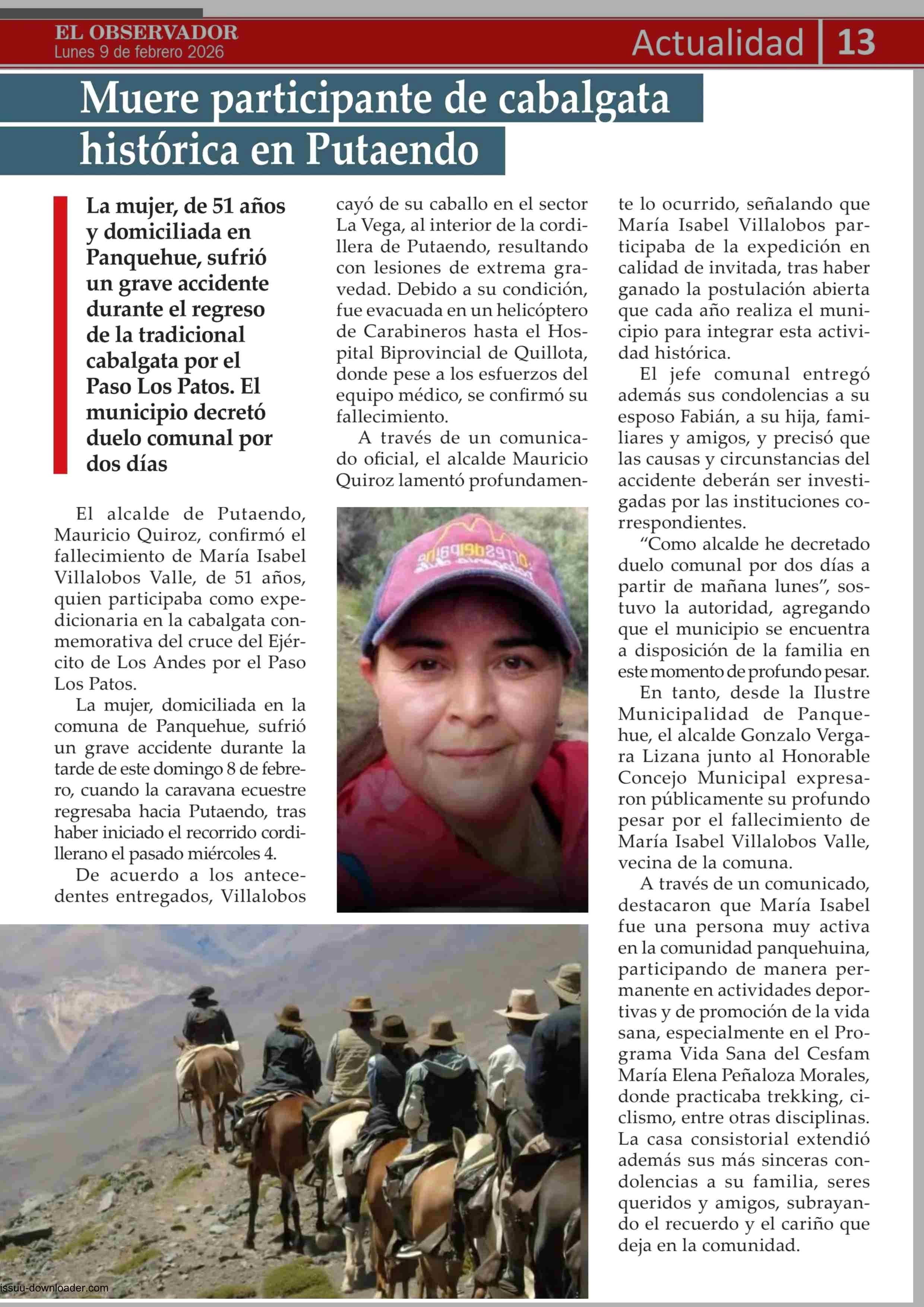 Muere participante de cabalgata histórica en Putaendo 09-02-2026 El Observador Vespertino |