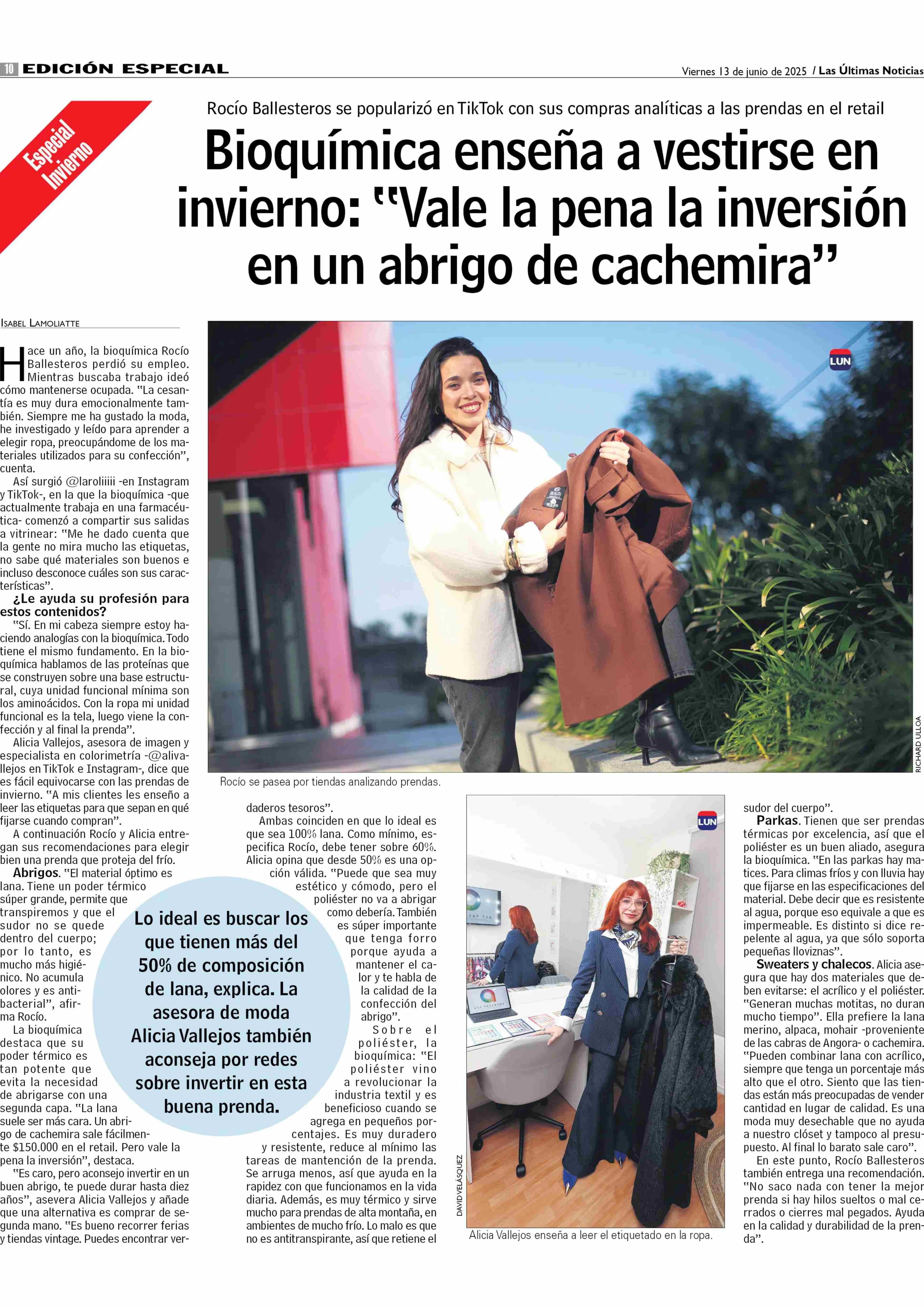Bioquimica enseña a vestirse en invierno: “Vale la pena la inversión en un abrigo de cachemira” 13-06-2025 Las Últimas Noticias |