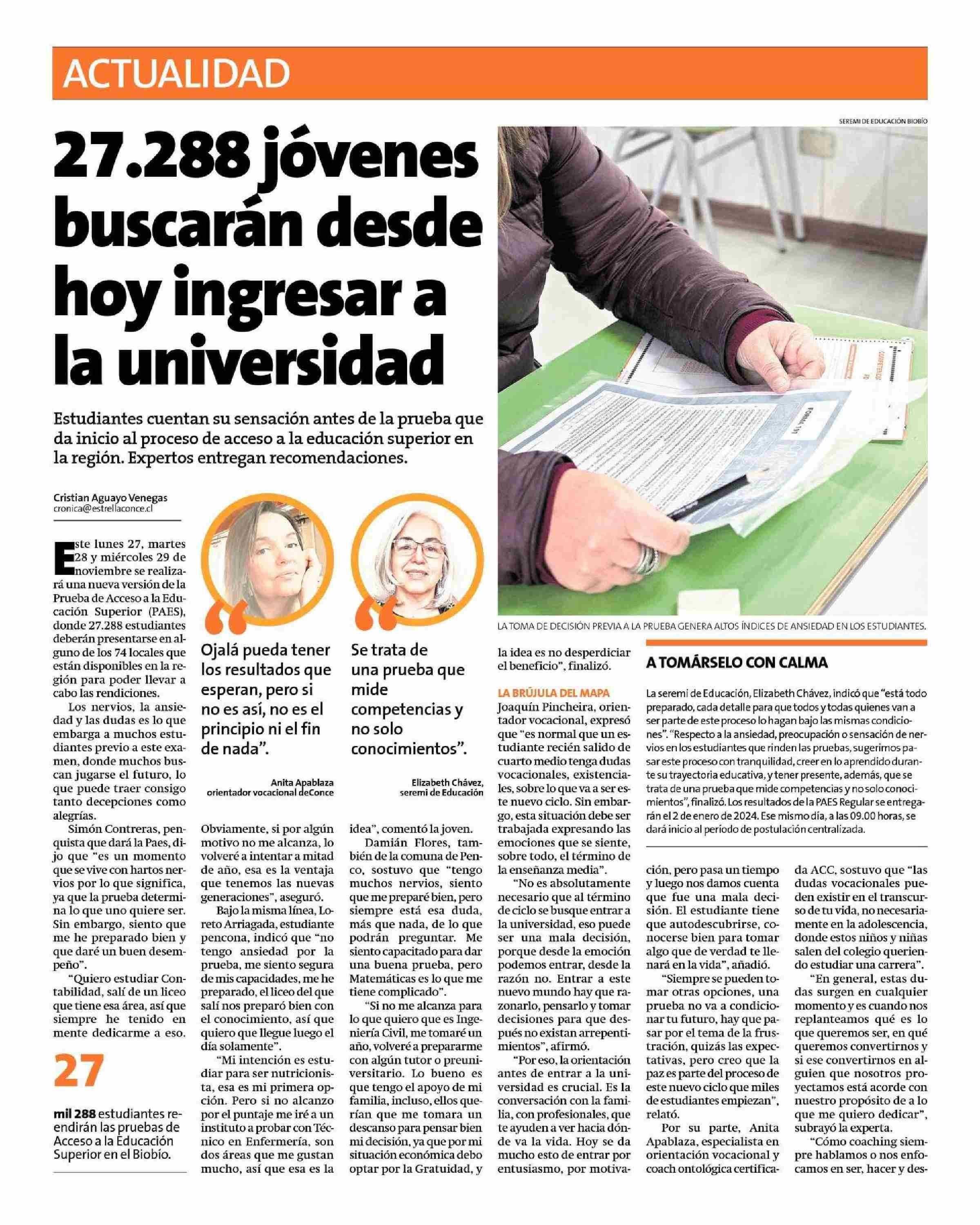 Fecha: 27-11-2023 Sector: Noticia general Región: Región del Bío-Bío