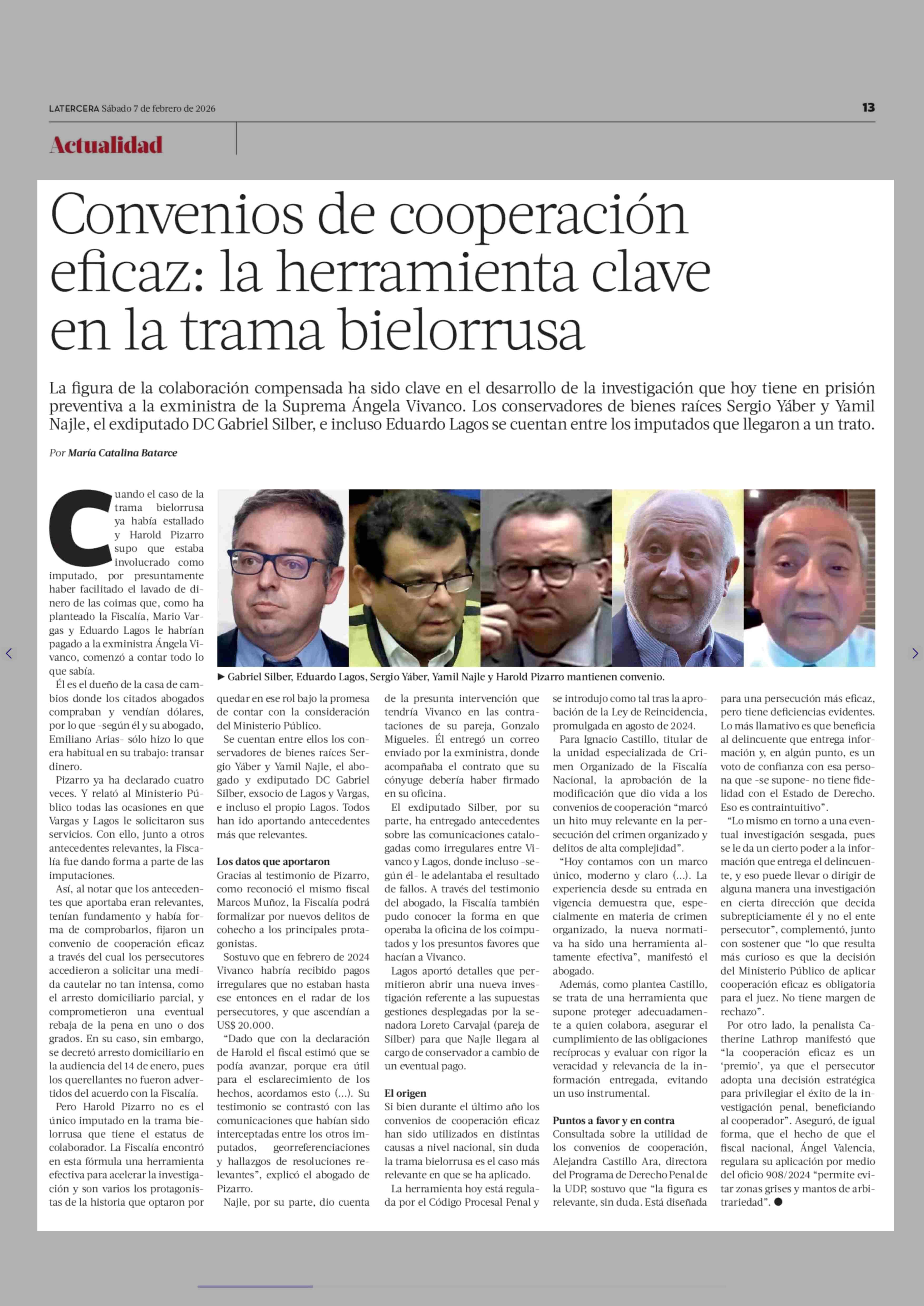 Convenios de cooperación eficaz: la herramienta clave en la trama bielorrusa 07-02-2026 La Tercera |
