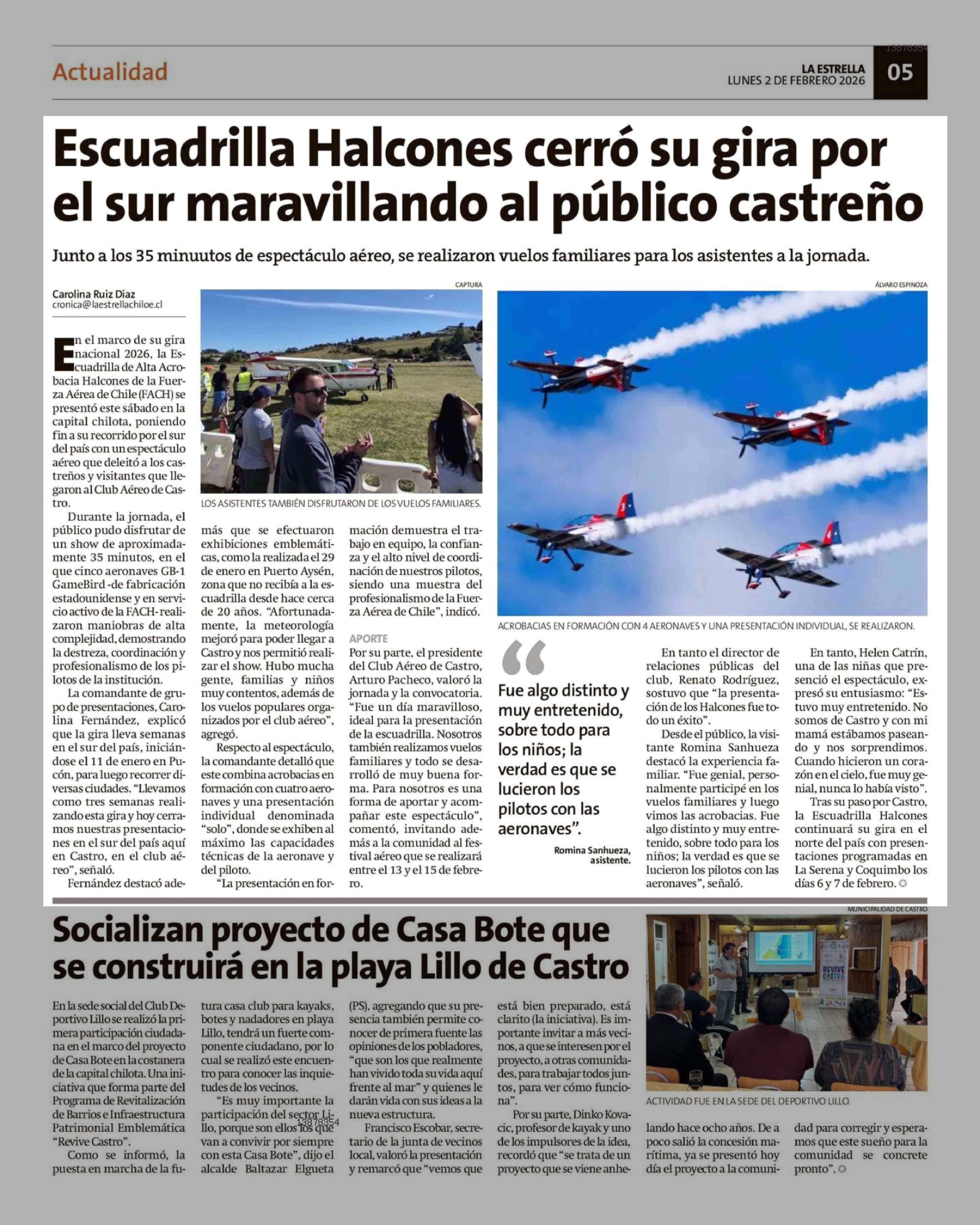 Escuadrilla Halcones cerró su gira por el sur maravillando al público castreño 02-02-2026 La Estrella de Chiloé |
