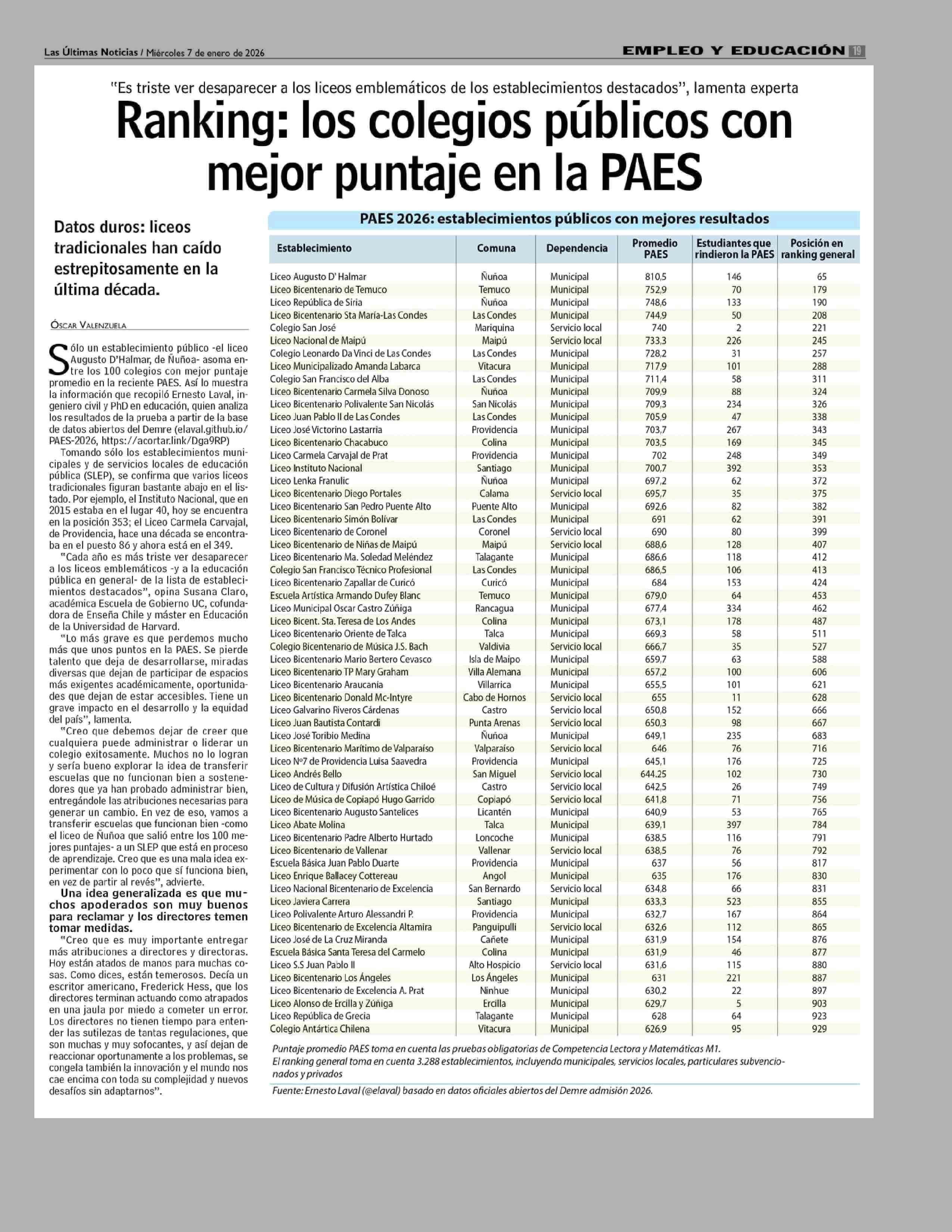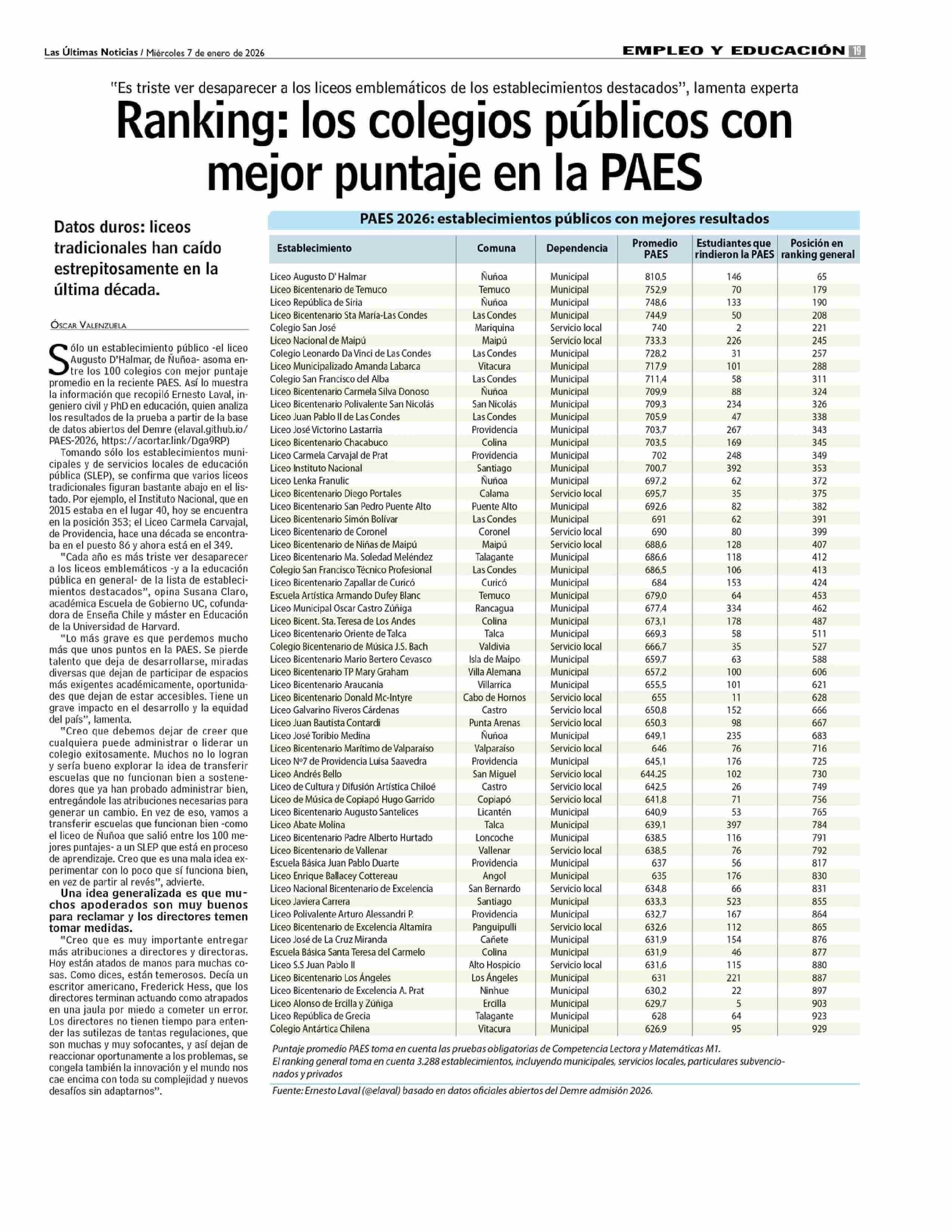 Título: Ranking: los colegios públicos con mejor puntaje en la PAES