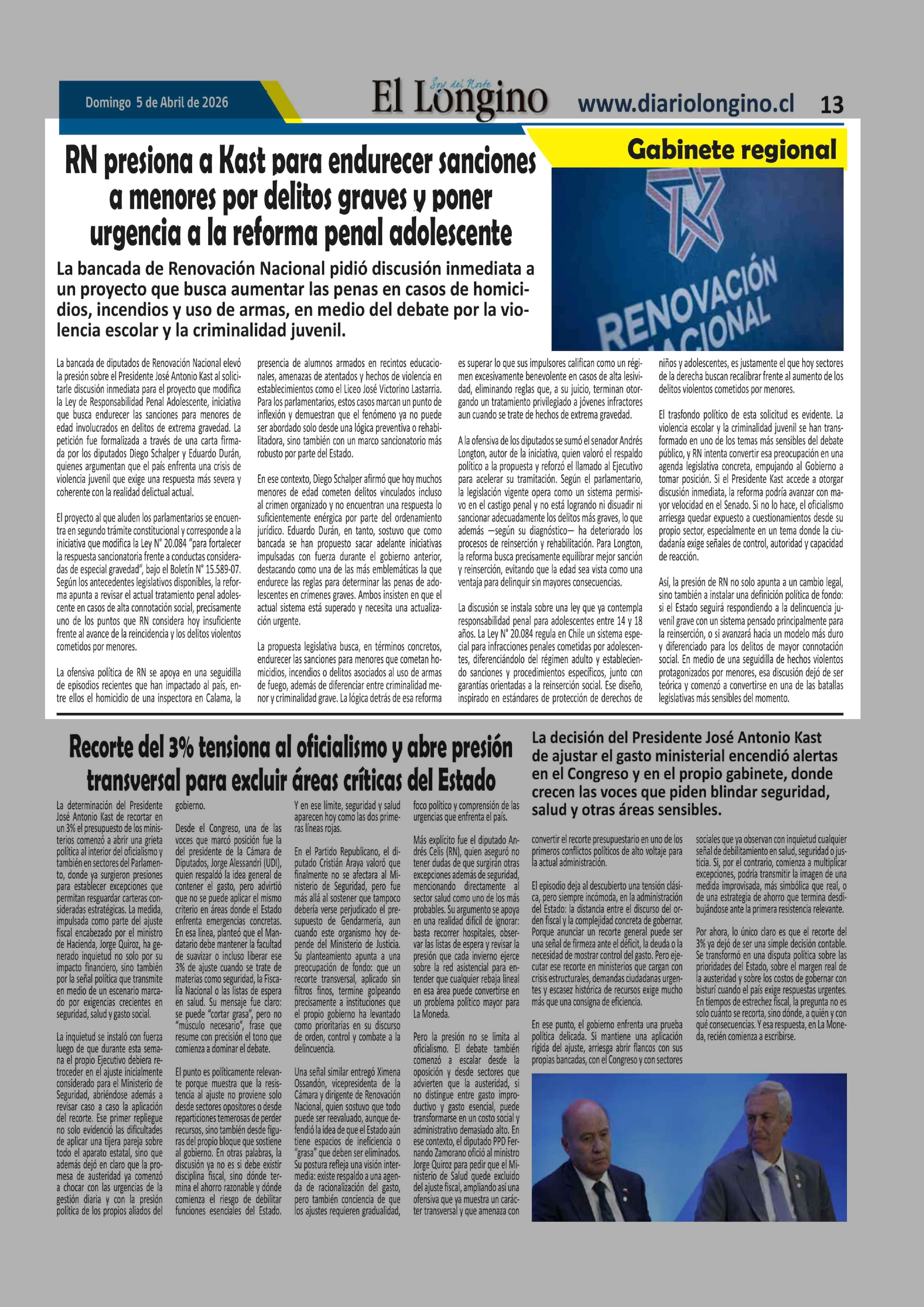 Título: RN presiona a Kast para endurecer sanciones a menores por delitos graves y poner urgencia a la reforma penal adolescente