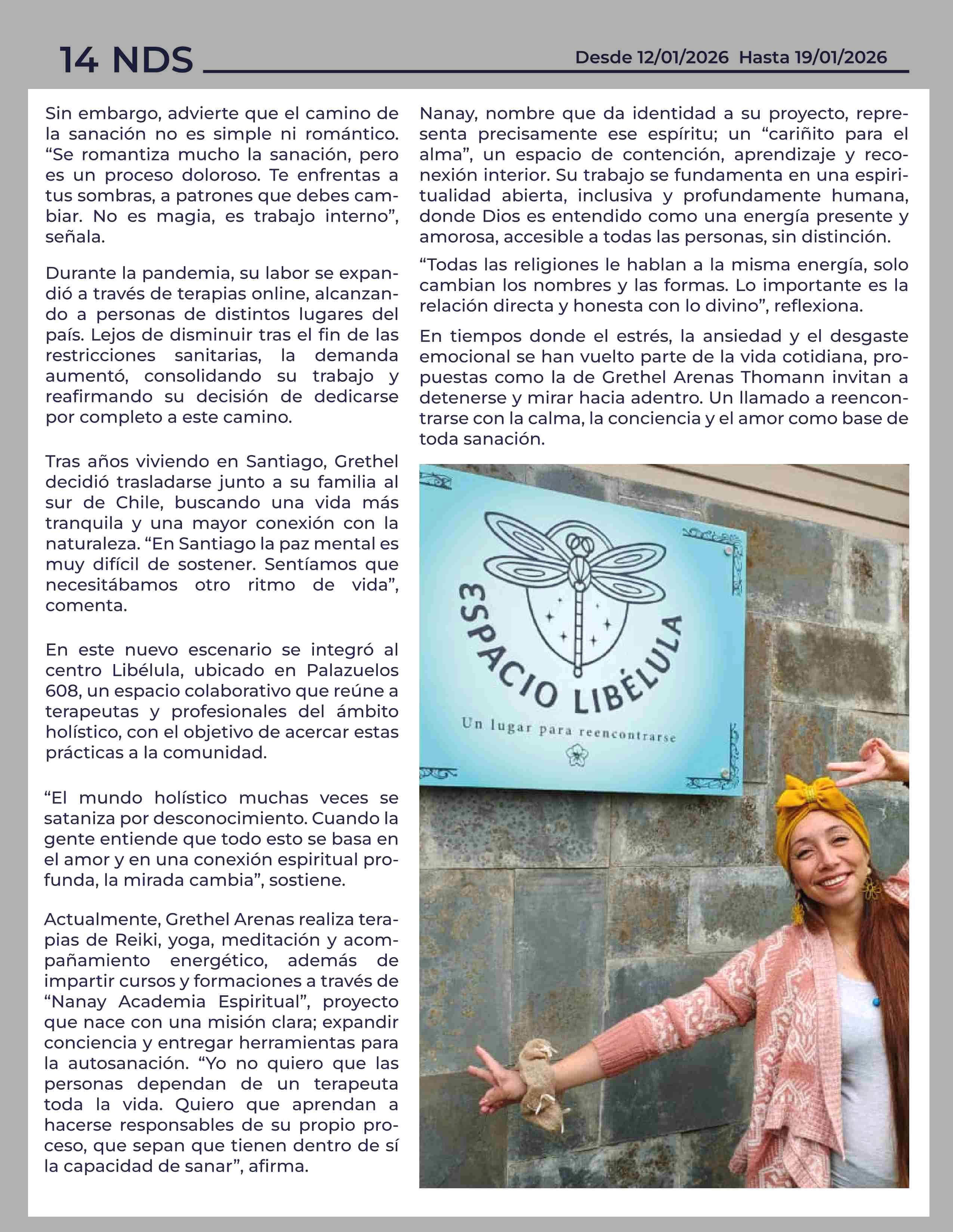 Entre la calma, la energía y la conciencia: el camino espiritual de Grethel Arenas en Pitrufquén 12-01-2026 Noticias del Sur |