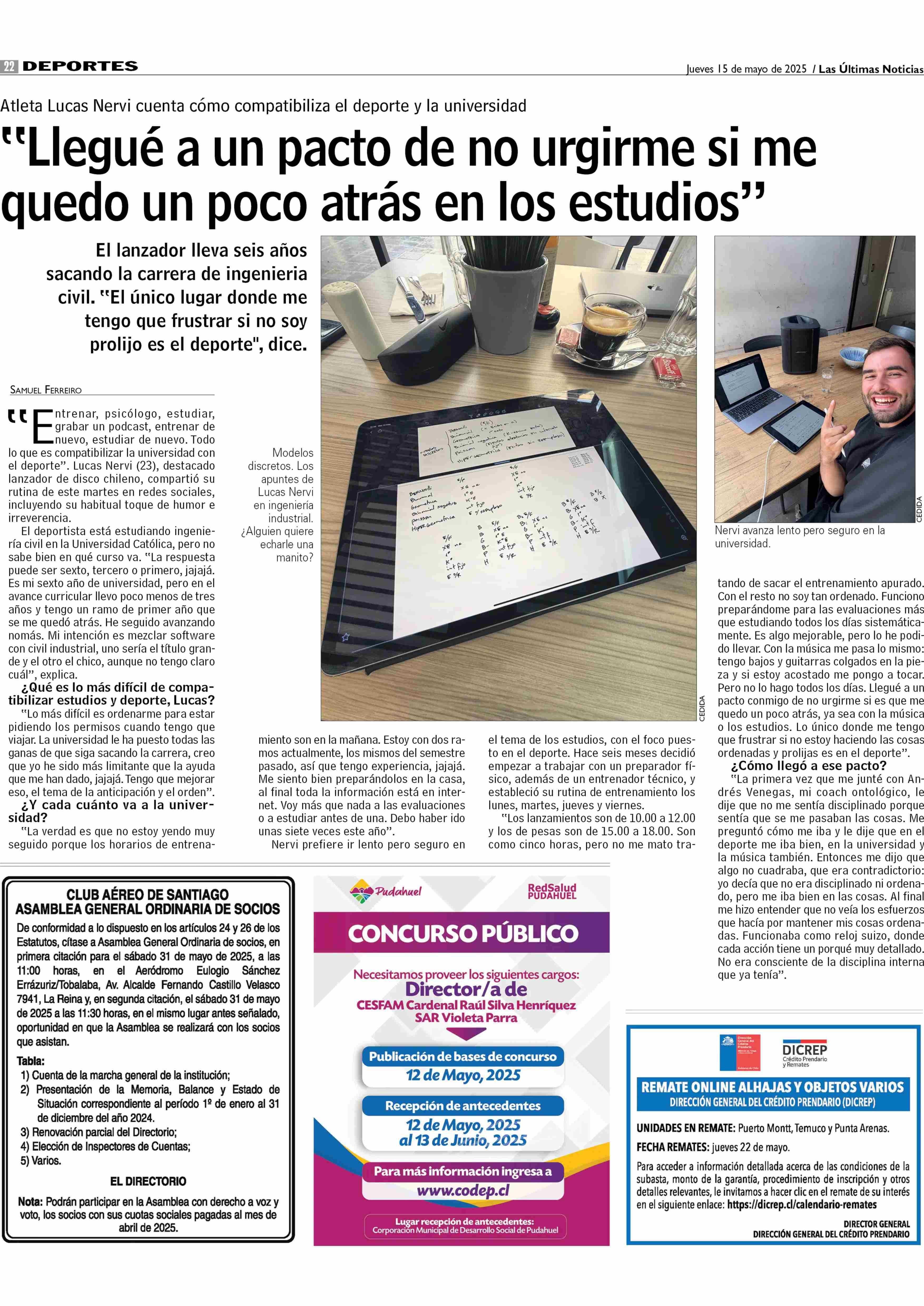 | Fecha: | 15-05-2025 | Sector: | Deportes | Región: | Región Metropolitana de Santiago |