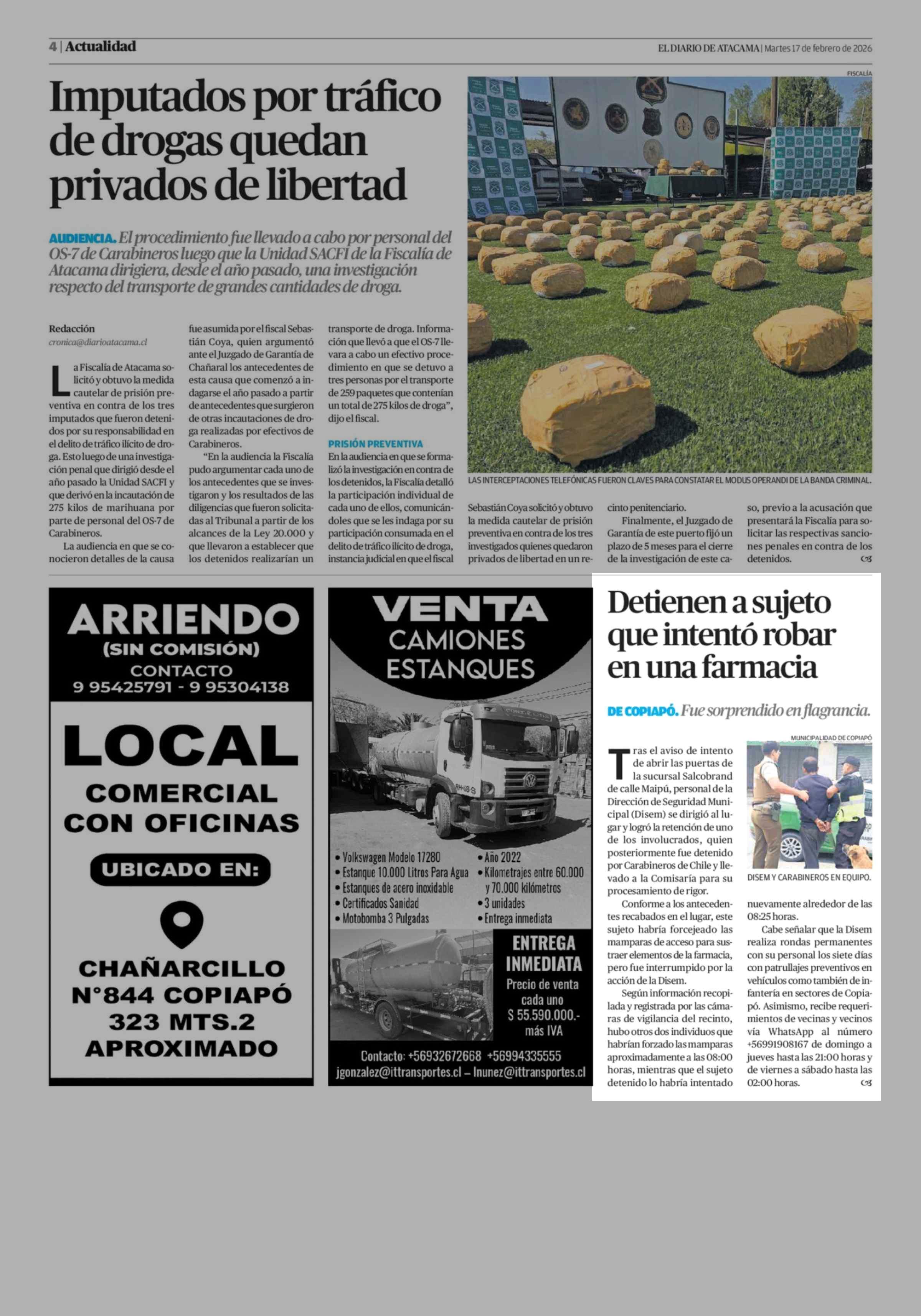 Fecha: 17-02-2026 Sector: Noticia general Región: Región de Atacama