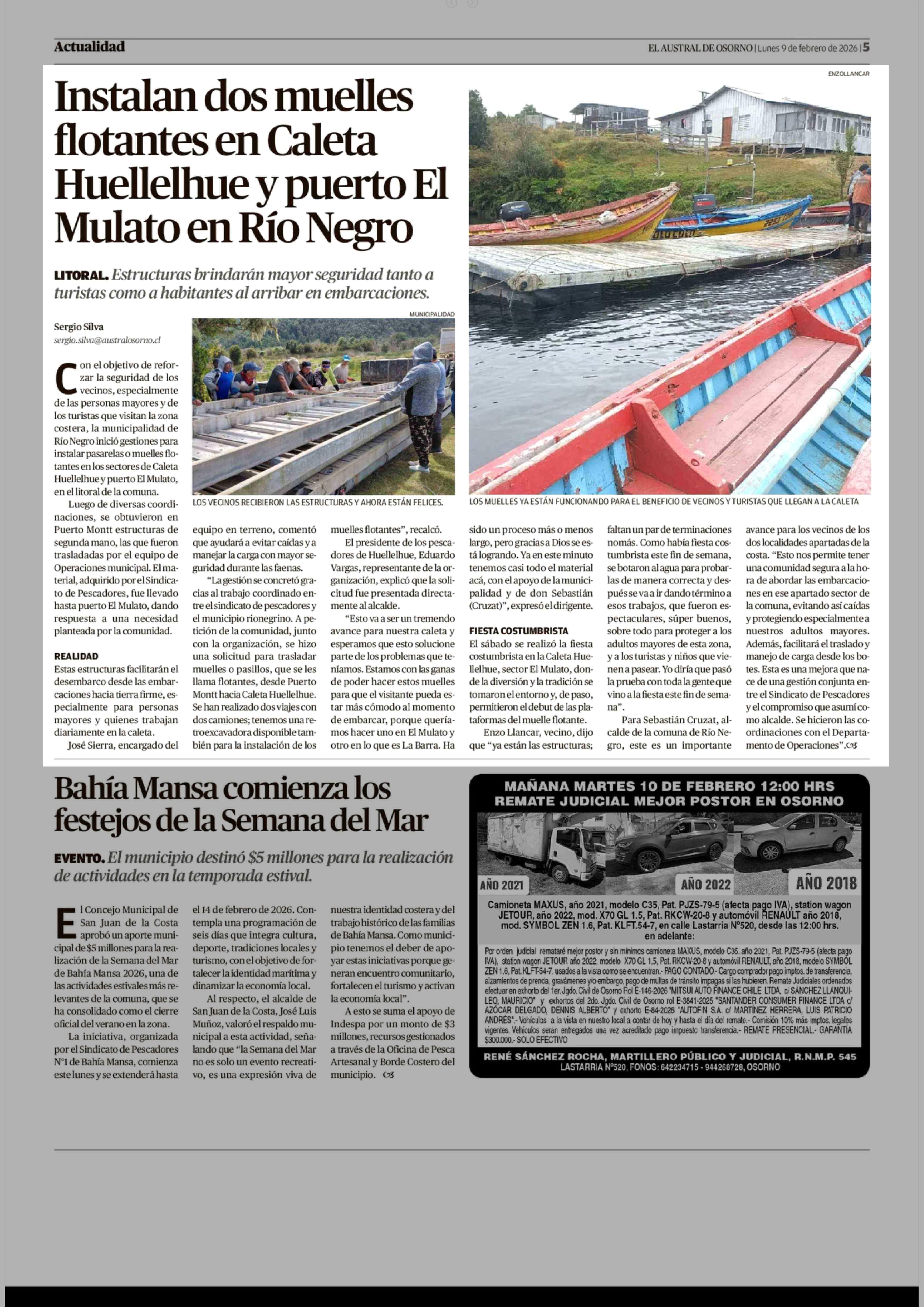 Fecha: 09-02-2026 Sector: Noticia general Región: Región de Los Lagos