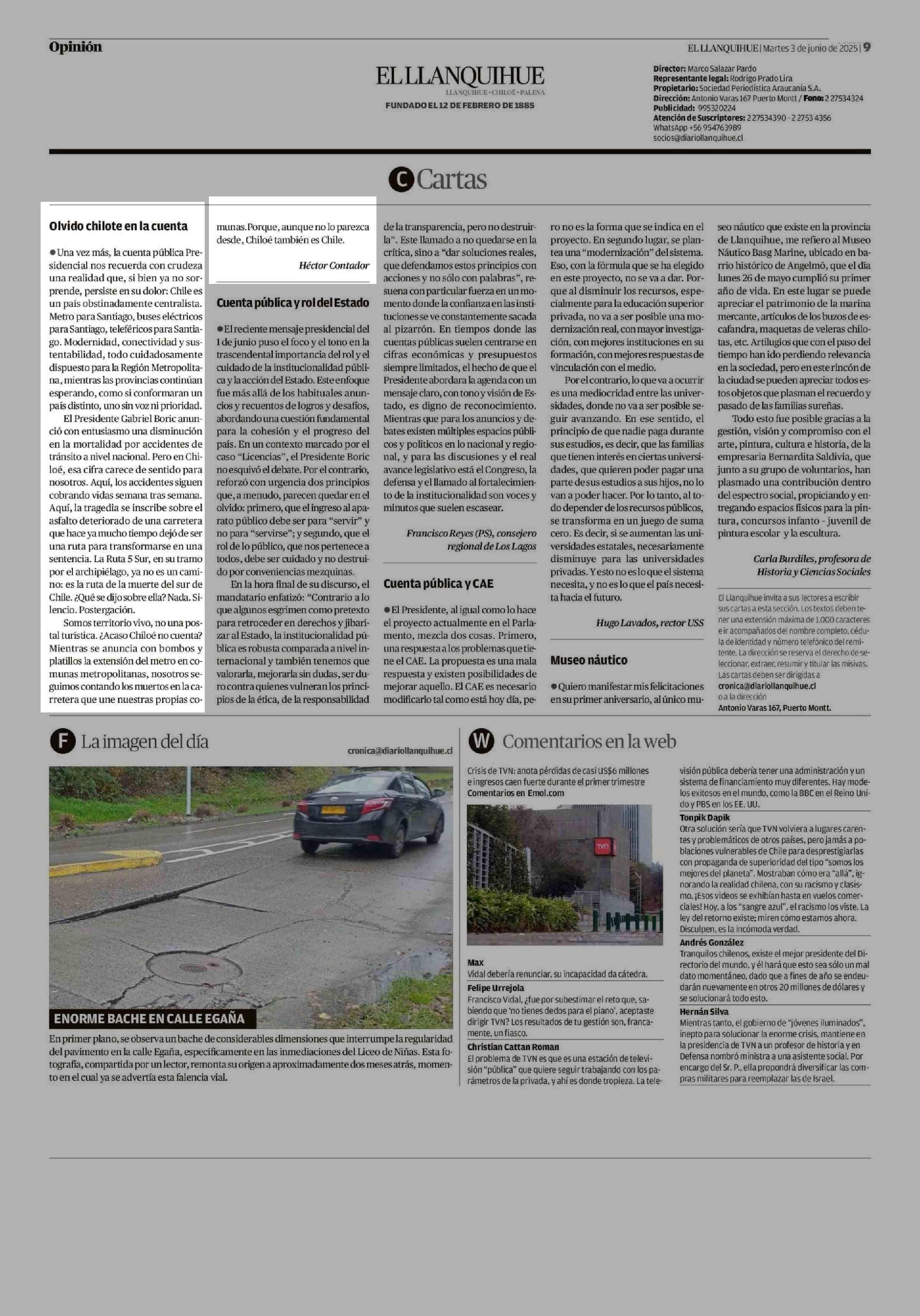 CARTAS: Olvido chilote en la cuenta 03-06-2025 El Llanquihue |