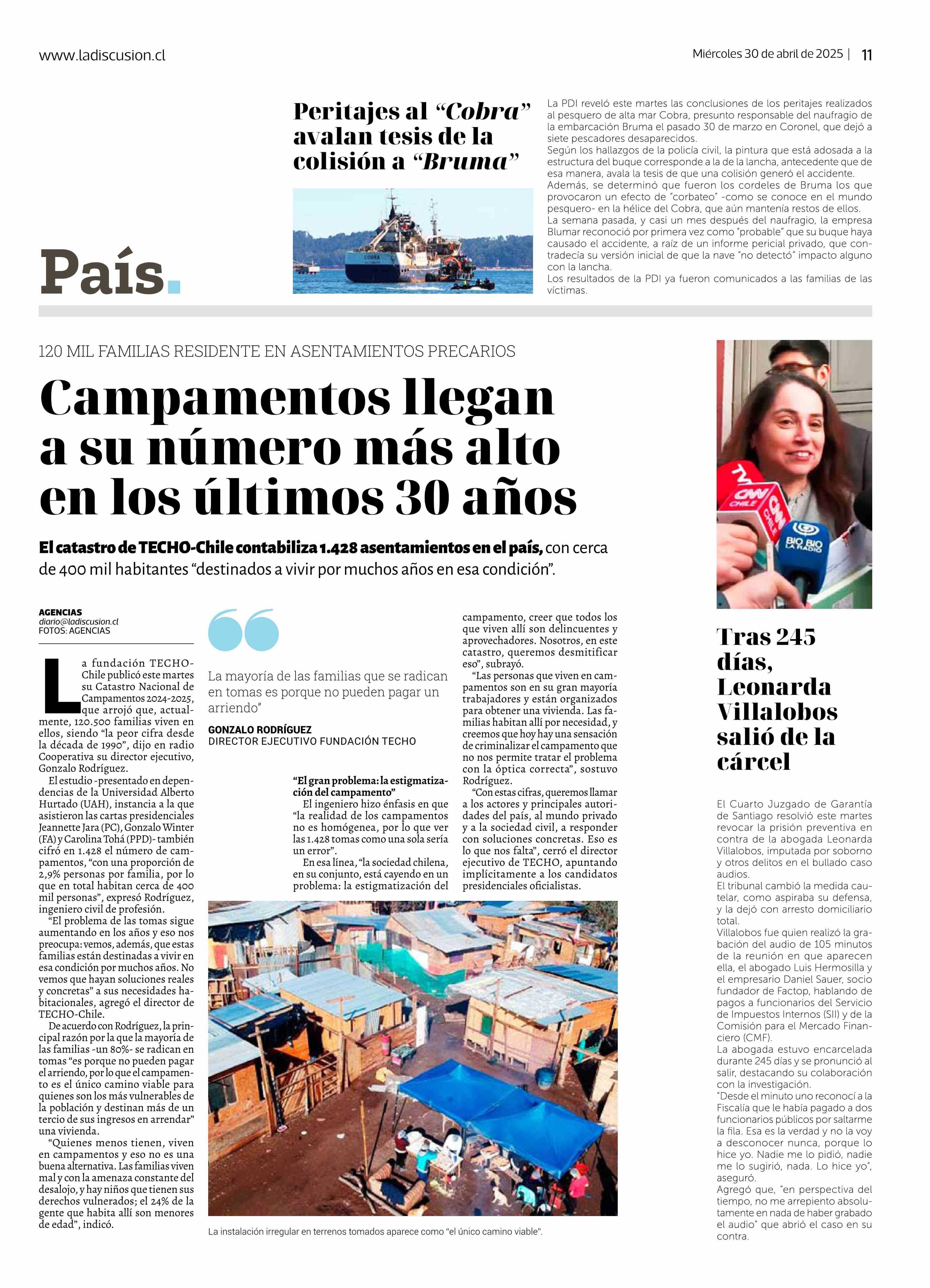 Peritajes al “Cobra” avalan tesis de la colisión a “Bruma” 30-04-2025 La Discusión |