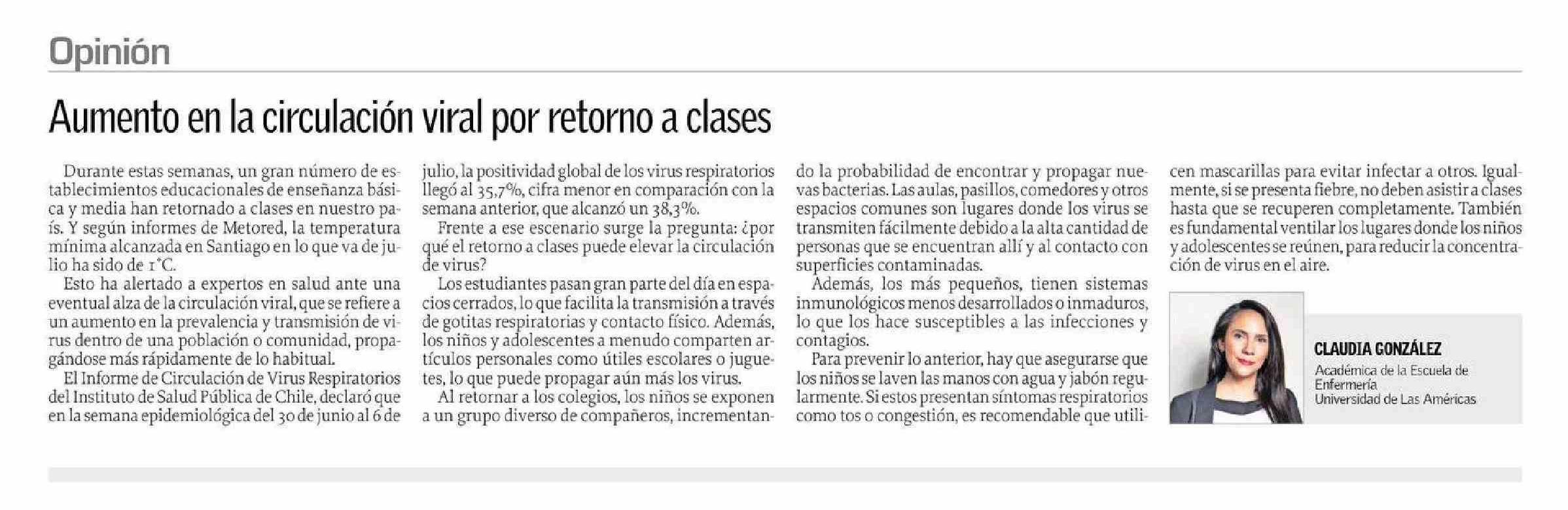 Aumento en la circulación viral por retorno a clases 21-07-2024 El Sur |