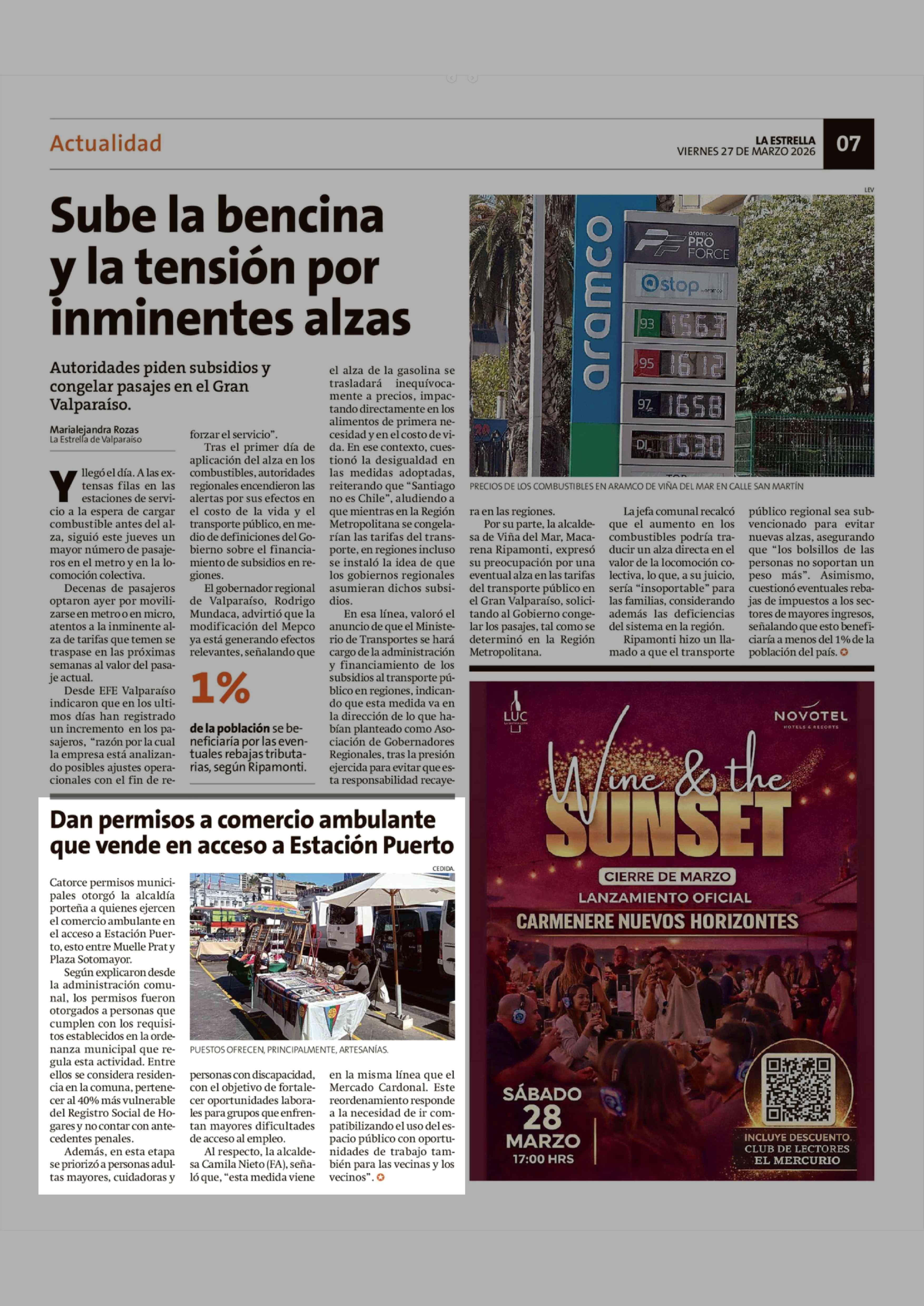 Dan permisos a comercio ambulante que vende en acceso a Estación Puerto 27-03-2026 La Estrella de Valparaíso |