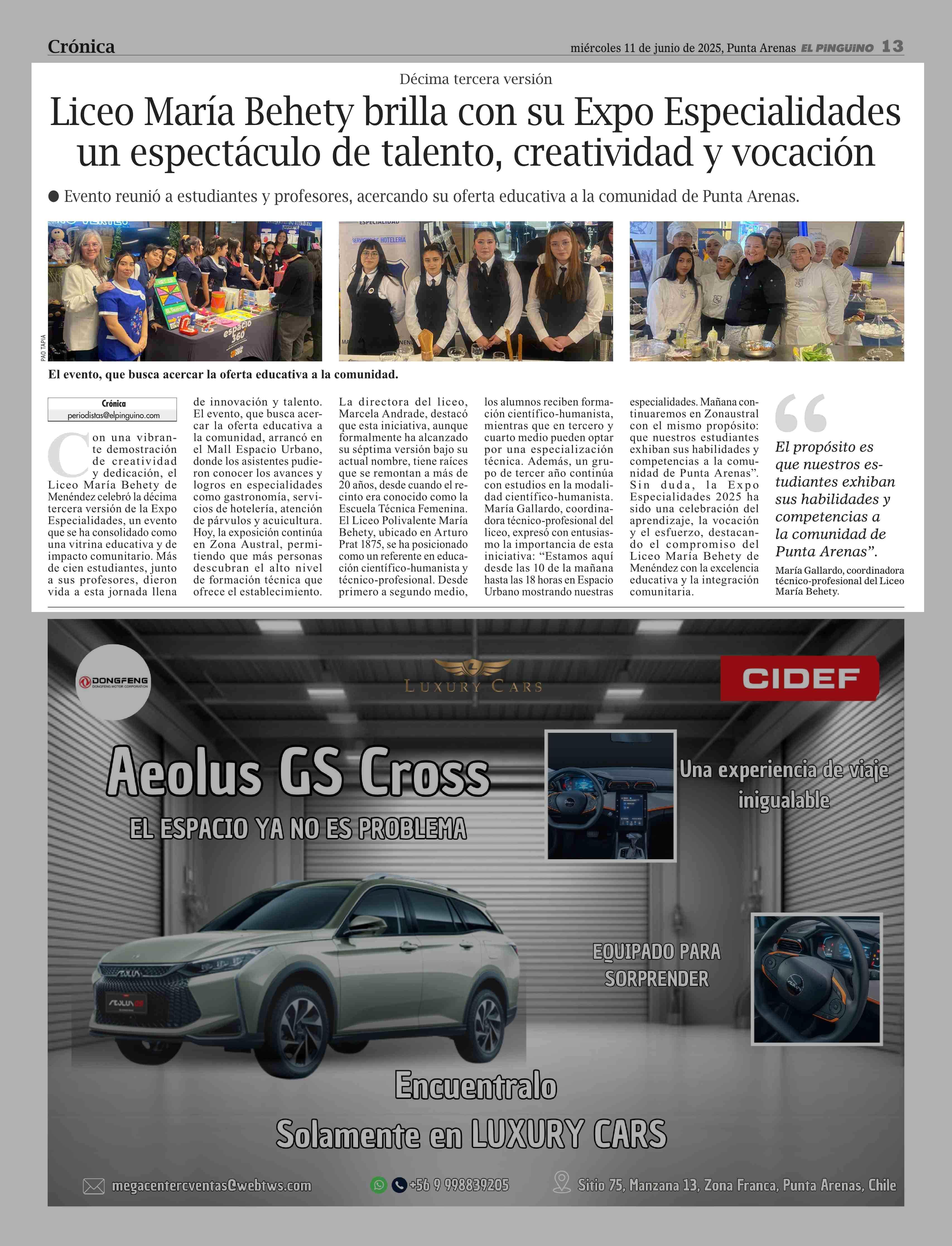 Liceo María Behety brilla con su Expo Especialidades un espectáculo de talento, creatividad y vocación