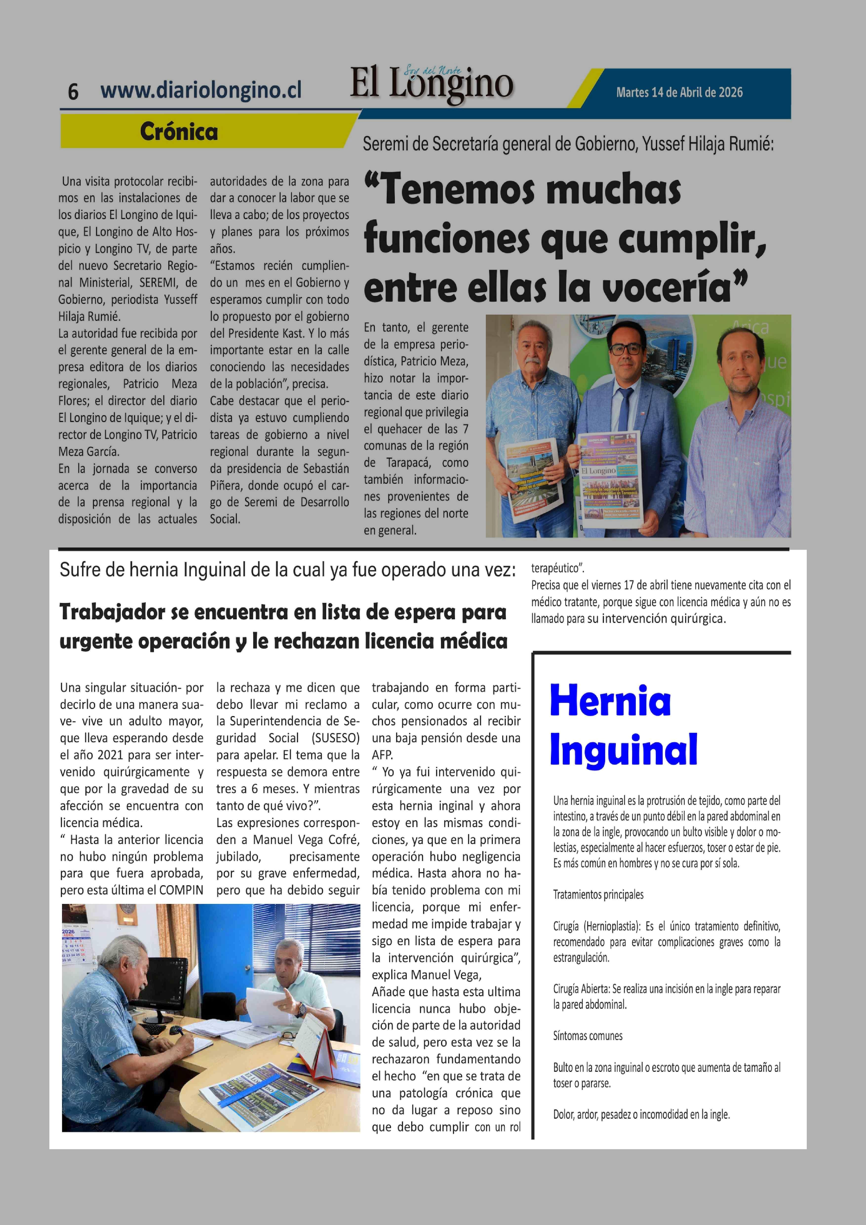 Fecha: 14-04-2026 Sector: Noticia general Región: Región de Tarapacá