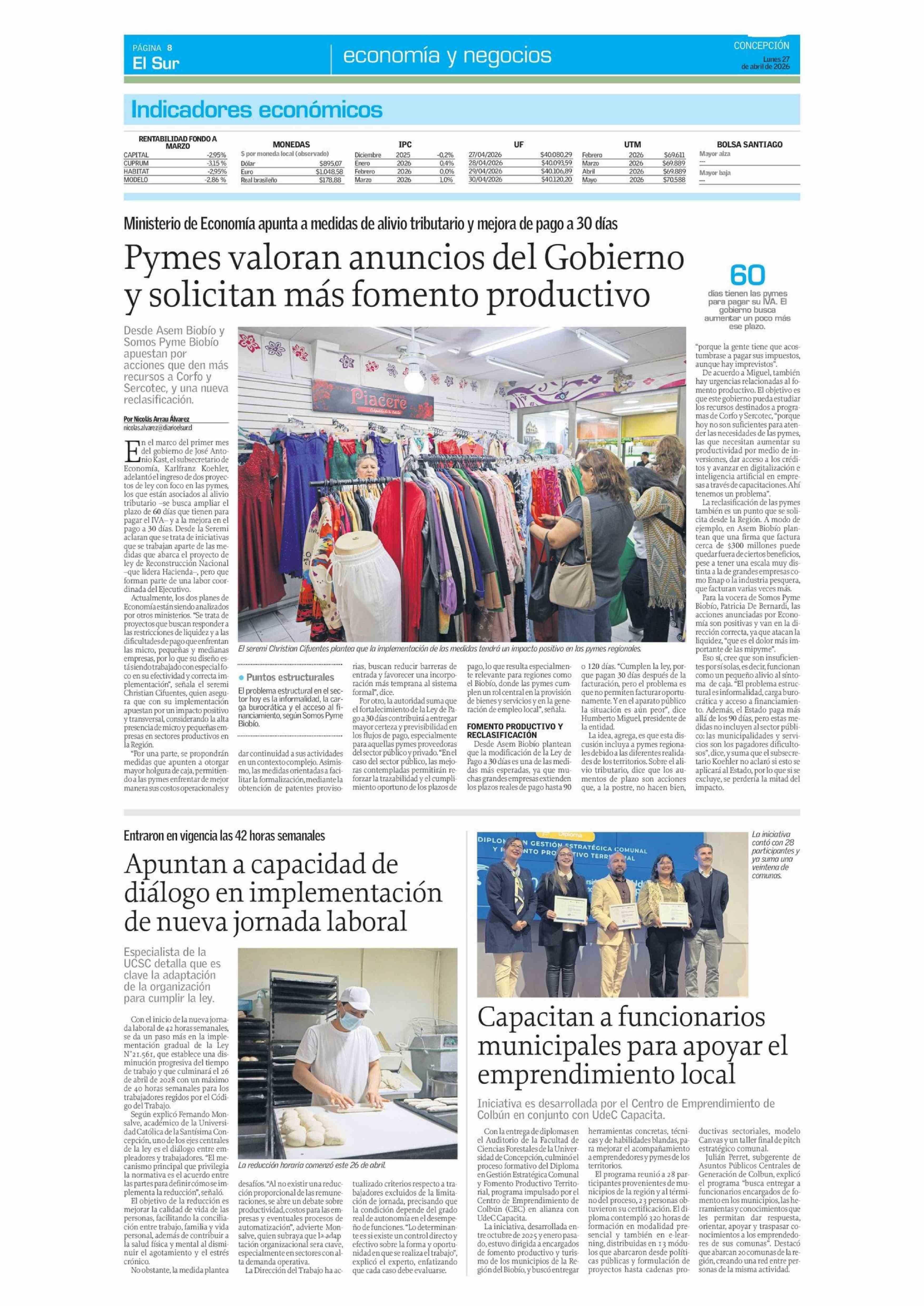 Apuntan a capacidad de diálogo en implementación de nueva jornada laboral 27-04-2026 El Sur |