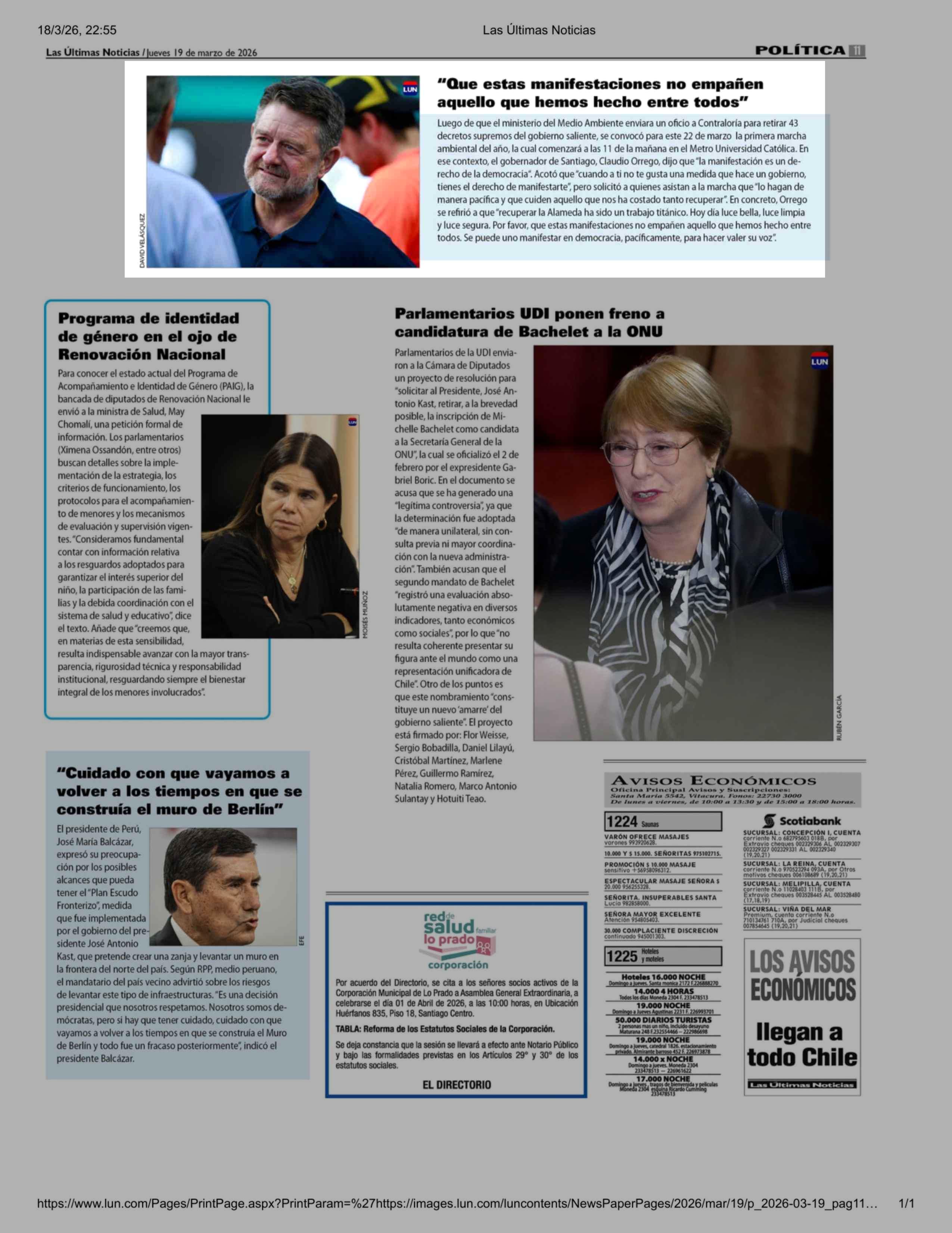| Fecha: | 19-03-2026 | Sector: | Noticia general | Región: | Región Metropolitana de Santiago |
