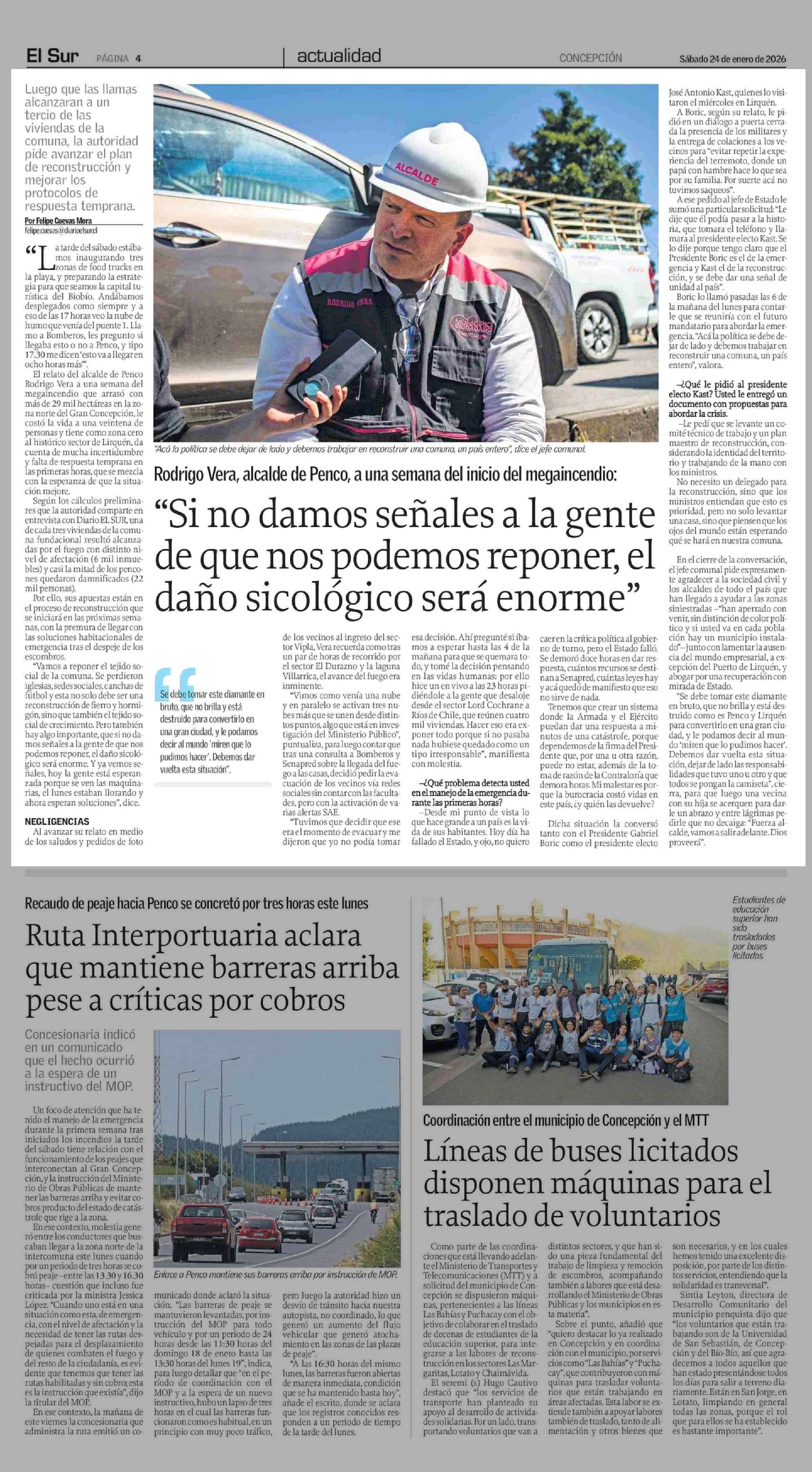 "Si no damos señales a la gente de que nos podemos reponer, el daño sicológico será enorme" 24-01-2026 El Sur |