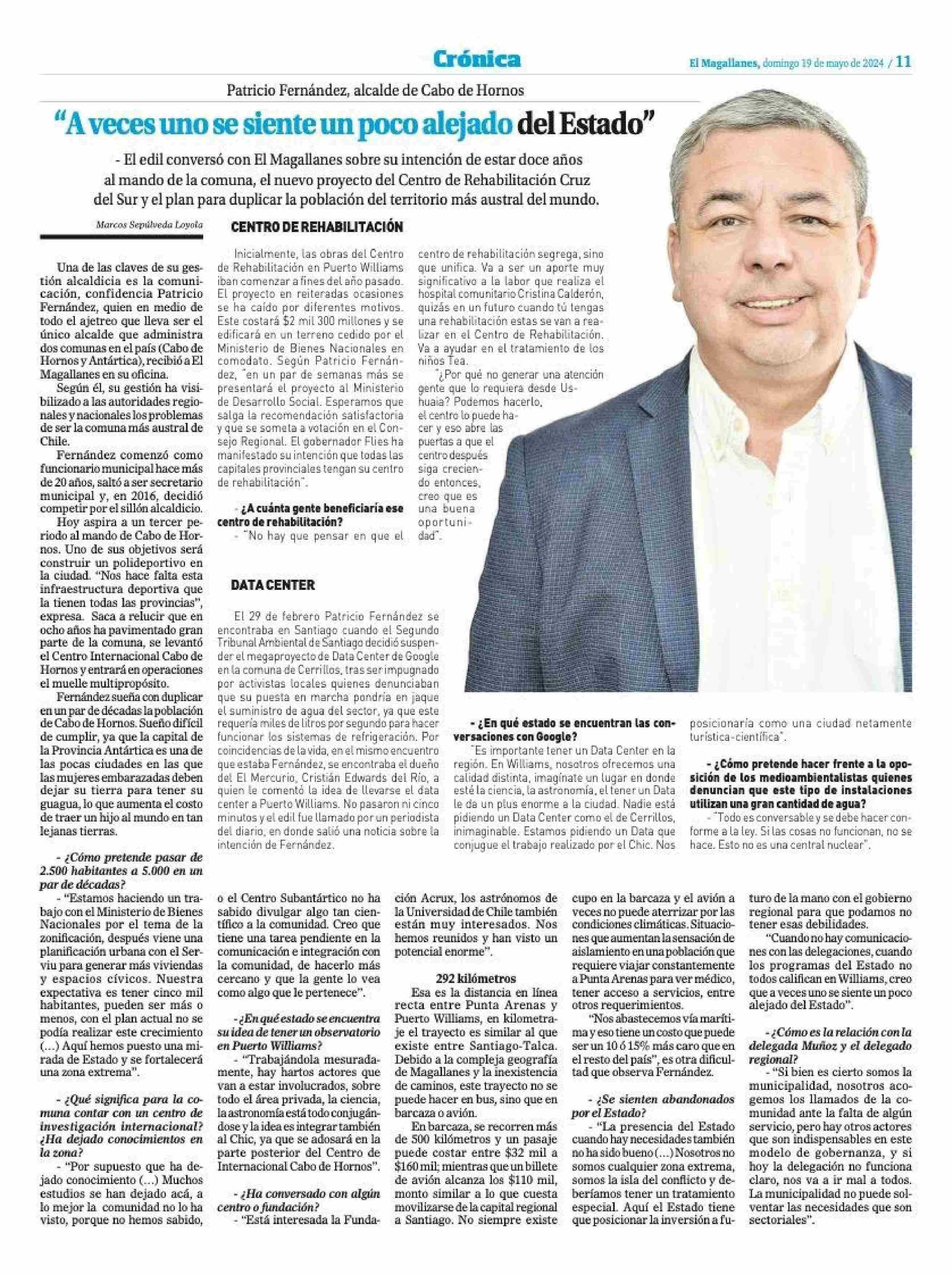 “A veces uno se siente un poco alejado del Estado” 19-05-2024 El Magallanes |