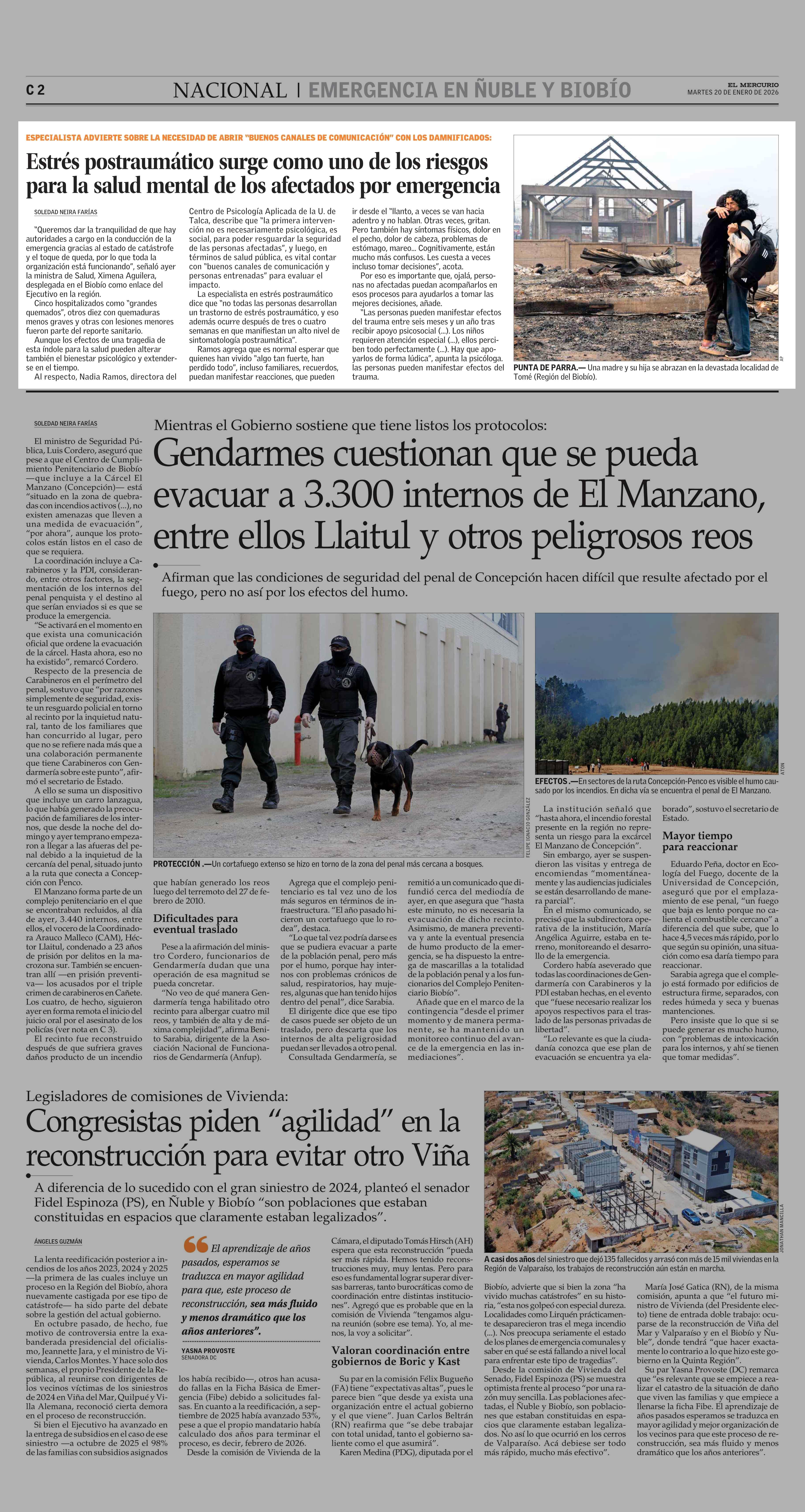 Estrés postraumático surge como uno de los riesgos para la salud mental de los afectados por emergencia 20-01-2026 El Mercurio |