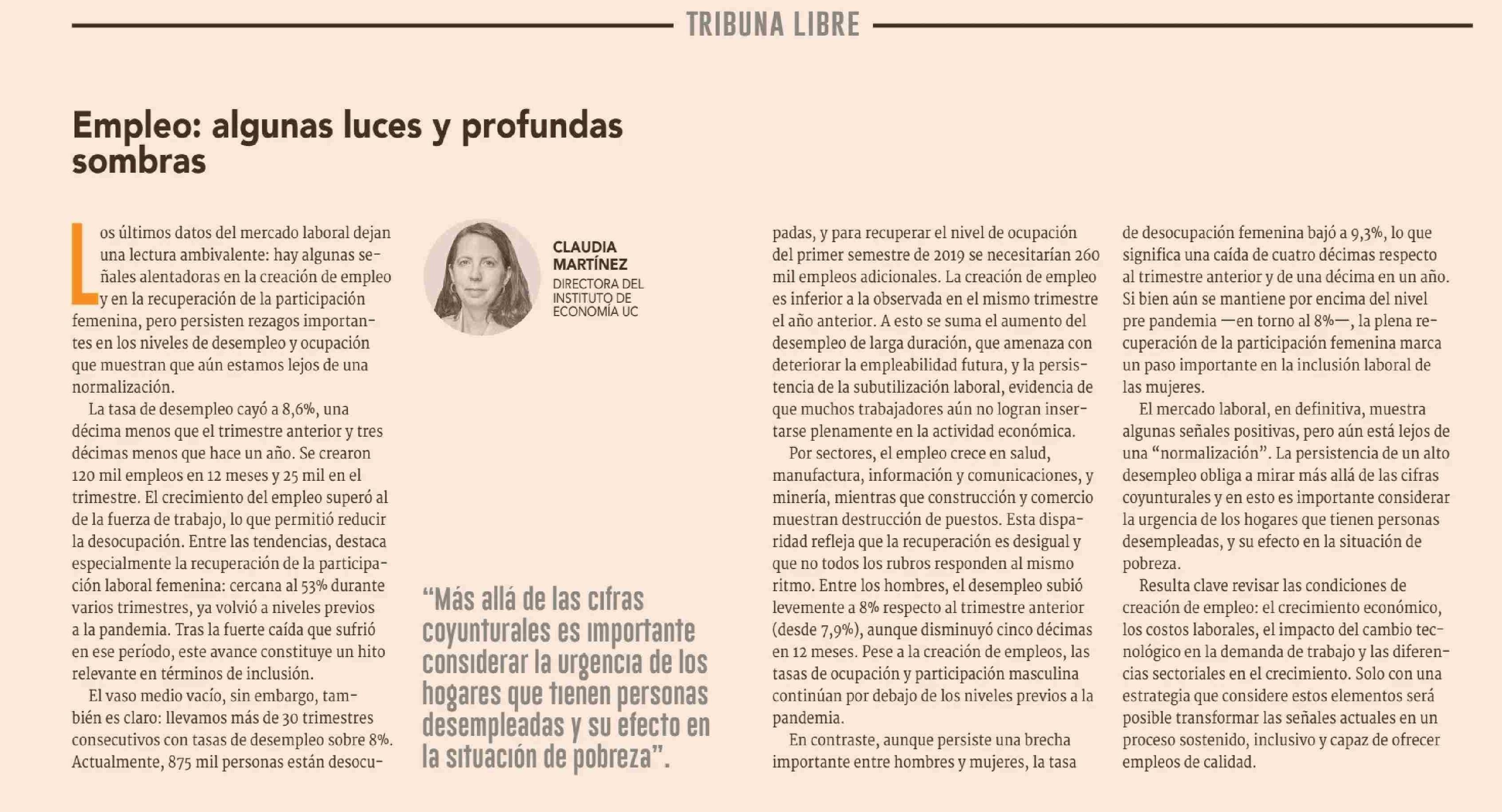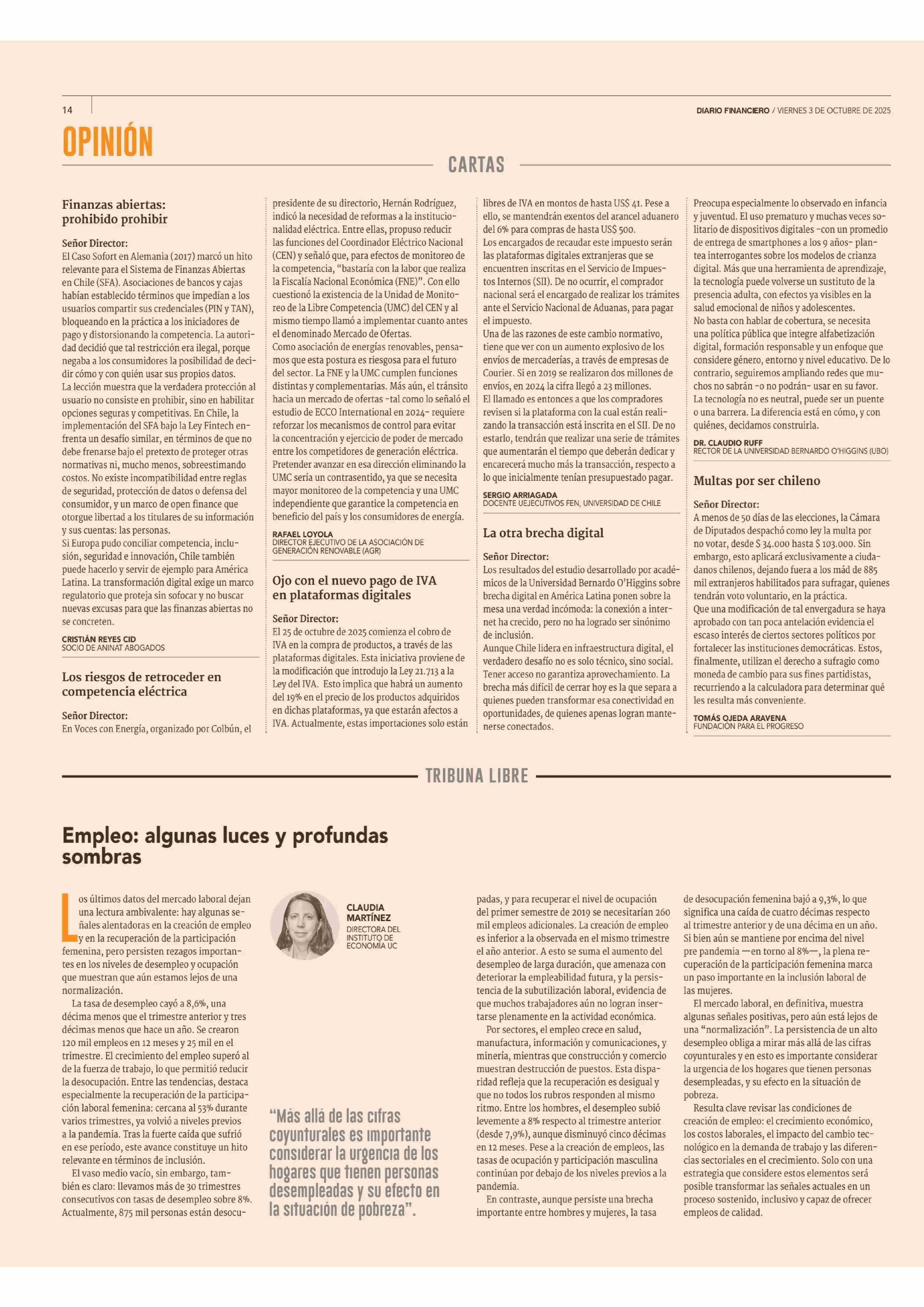COLUMNAS DE OPINIÓN: Empleo, algunas luces y profundas 03-10-2025 Diario Financiero |
