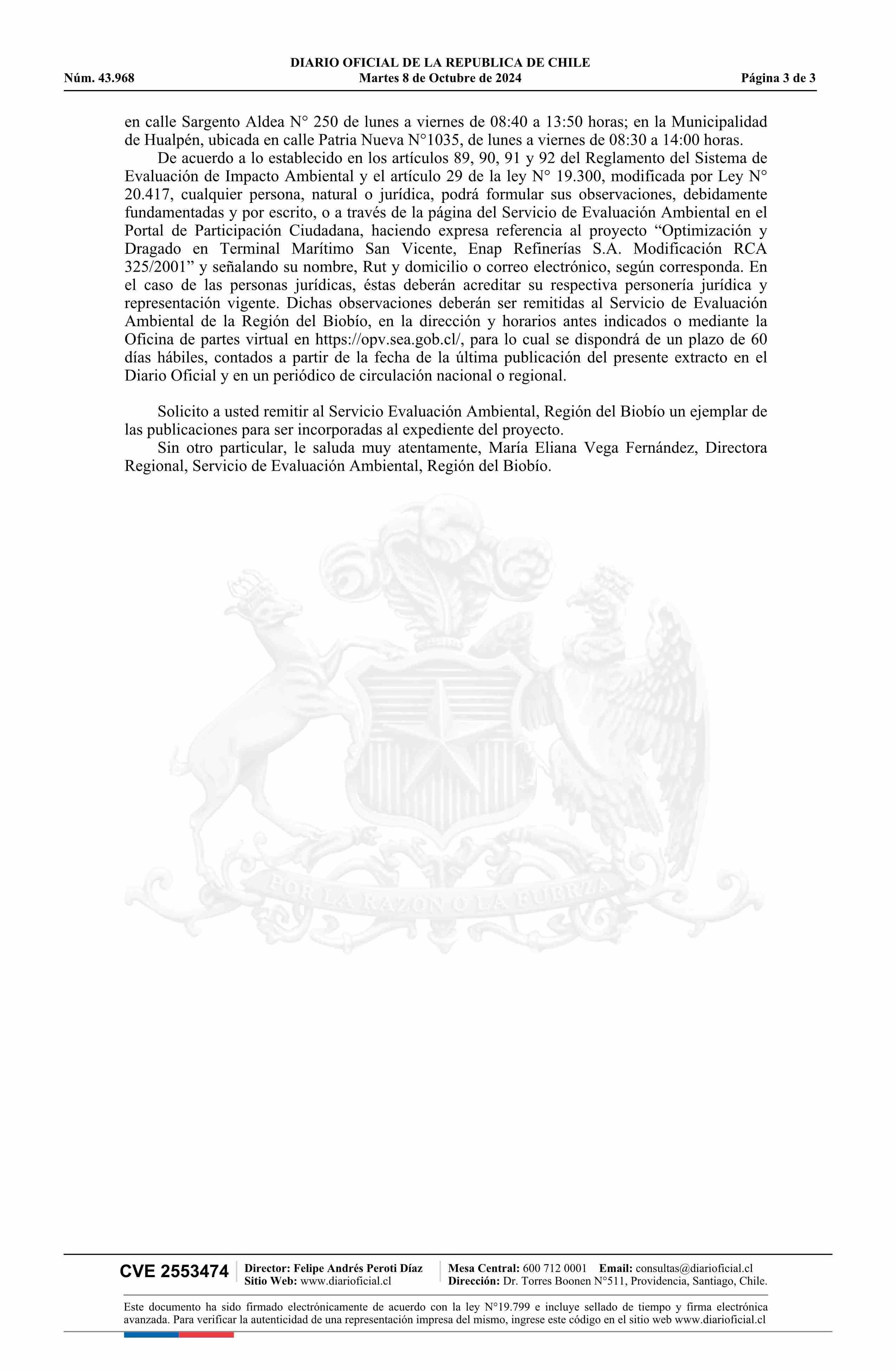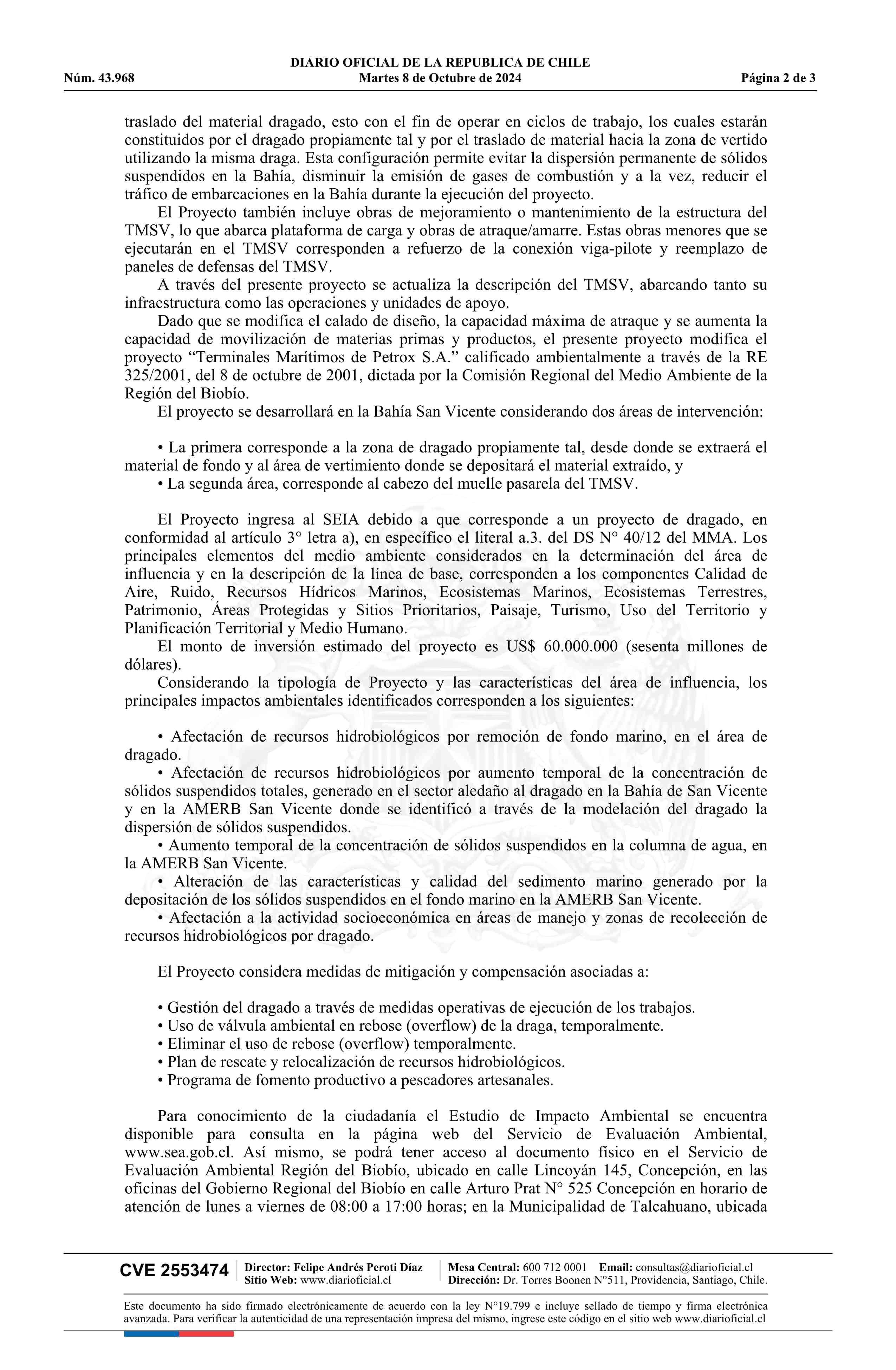Título: Extracto de Estudio de Impacto Ambiental del proyecto Optimización y Dragado en Terminal Marítimo San Vicente, Enap Refinerías S.A. Modificación RCA 325/2001