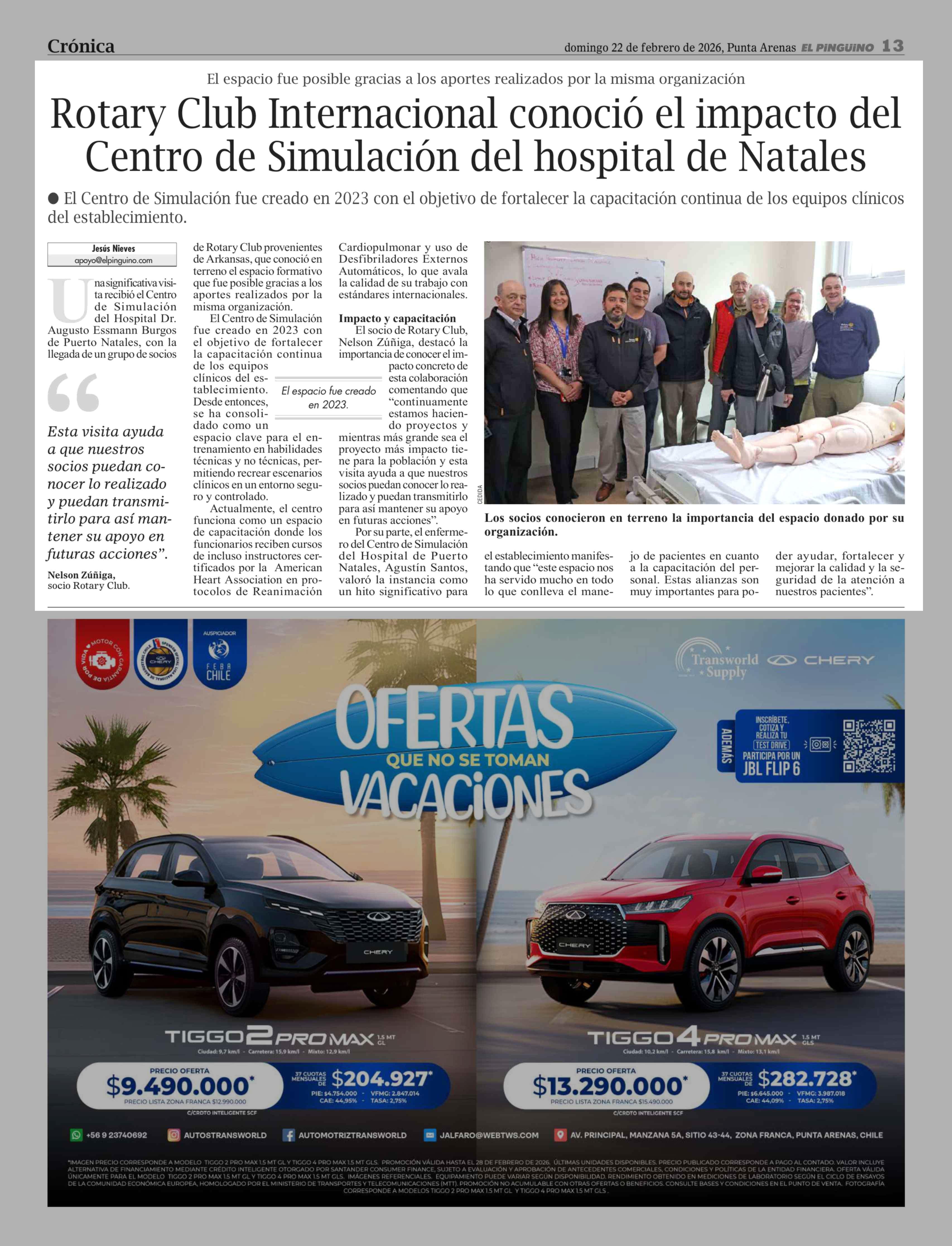 Rotary Club Internacional conoció el impacto del Centro de Simulación del hospital de Natales 22-02-2026 El Pingüino |