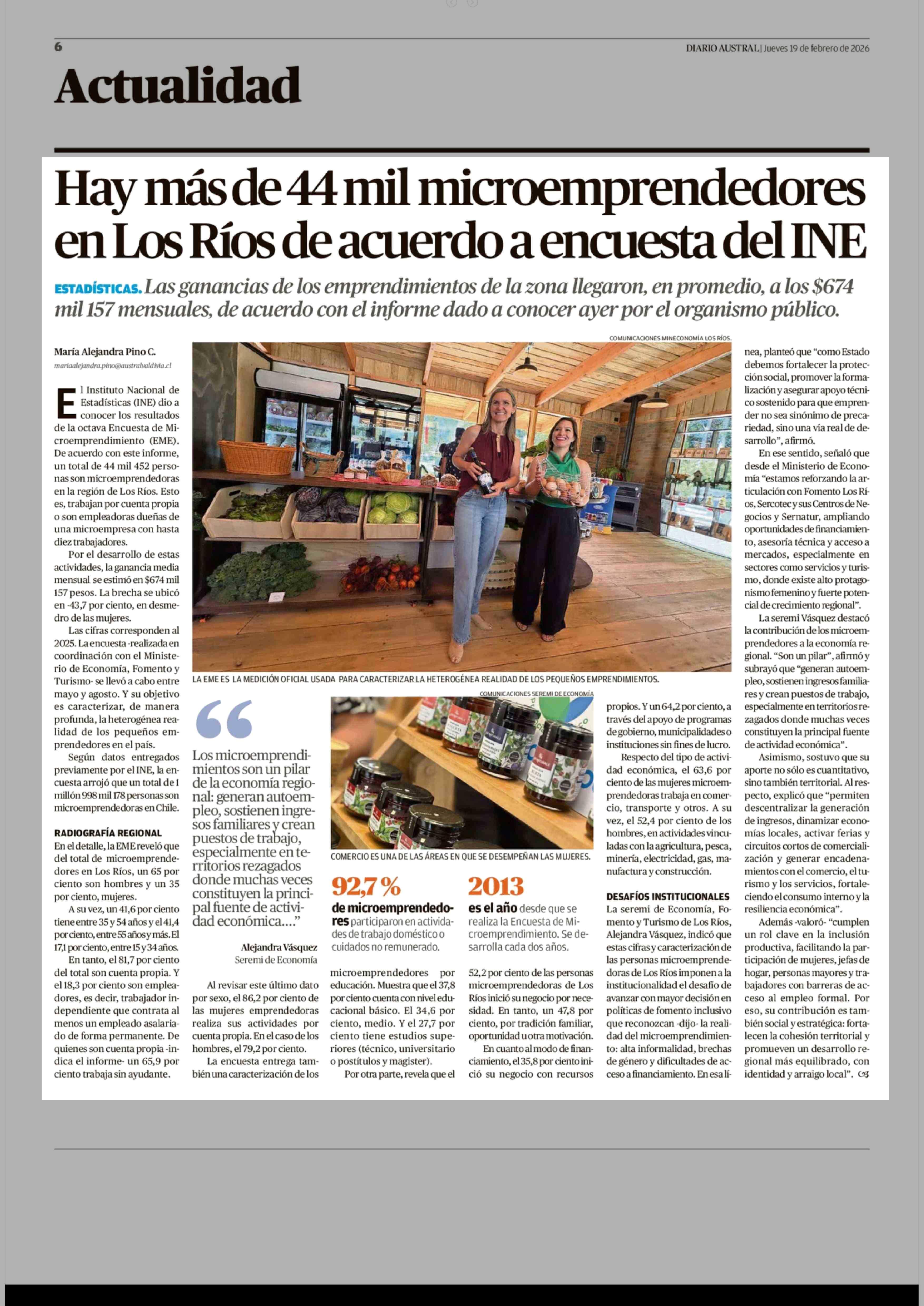 Hay más de 44 mil microemprendedores en Los Ríos de acuerdo a encuesta del INE 19-02-2026 Diario Austral Región de Los Ríos |