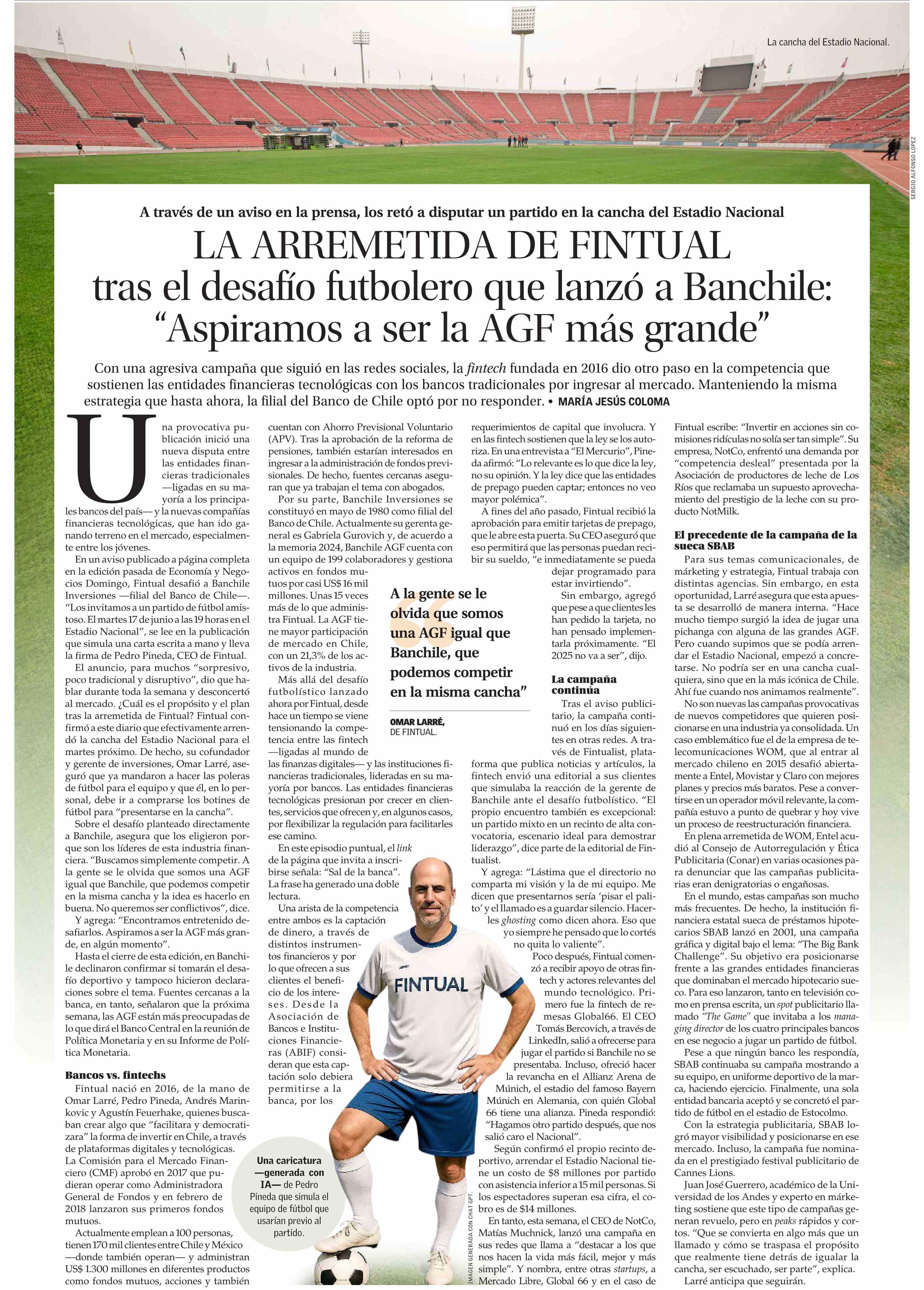 LA ARREMETIDA DE FINTUAL tras el desafío futbolero que lanzó a Banchile: "Aspiramos a ser la AGF más grande" 15-06-2025 El Mercurio |