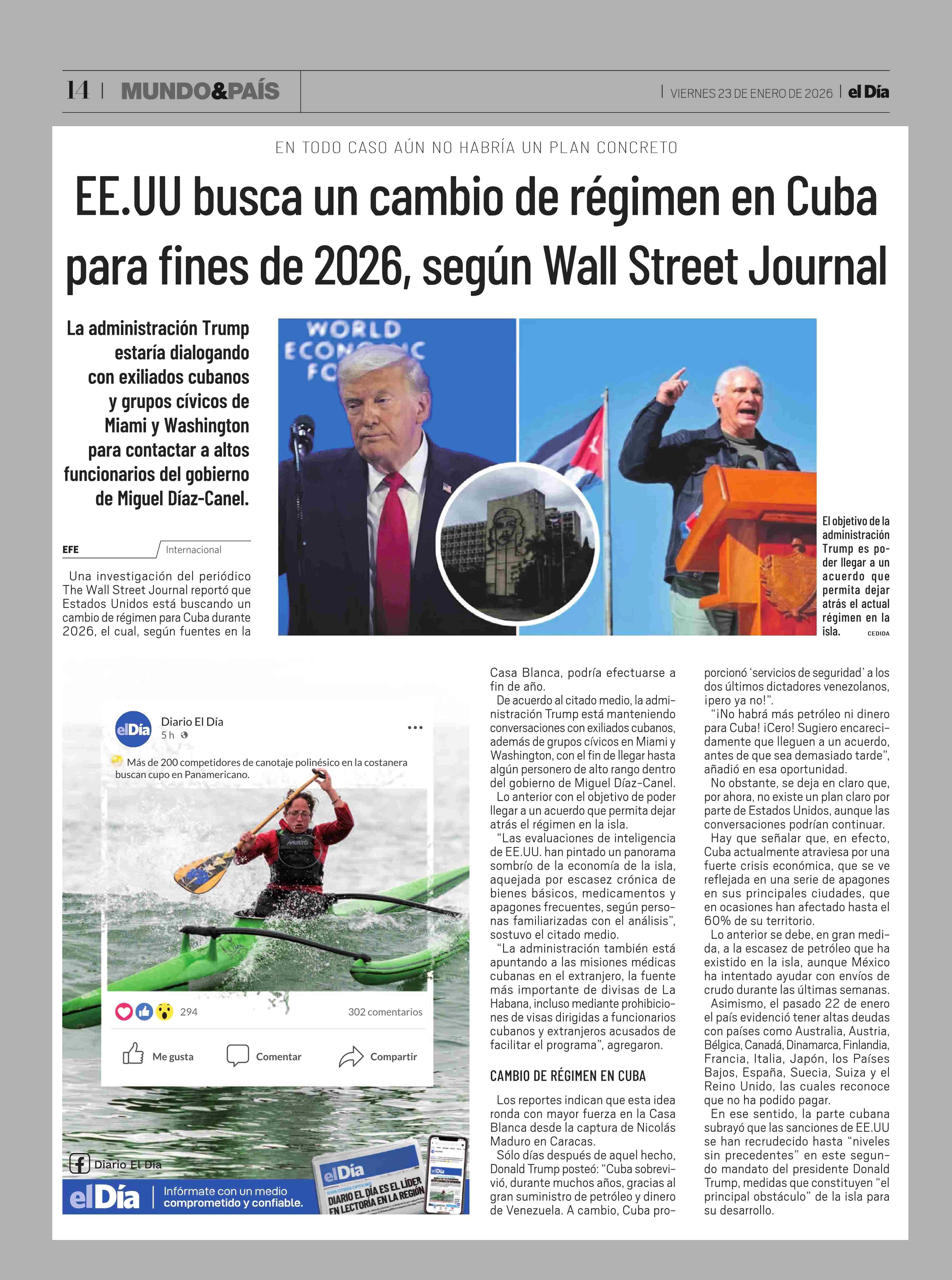 Título: EE.UU busca un cambio de régimen en Cuba para fines de 2026, según Wall Street Journal