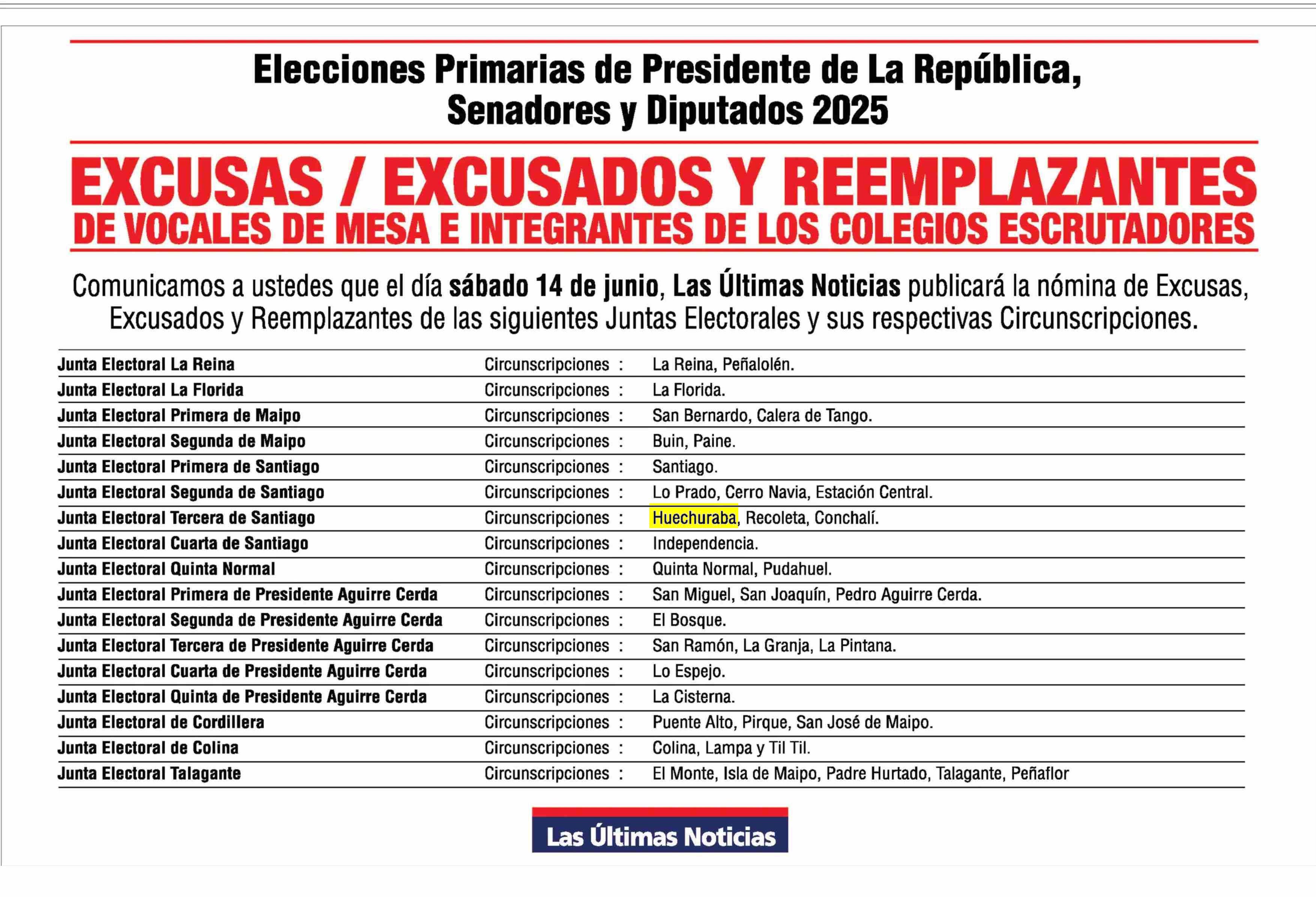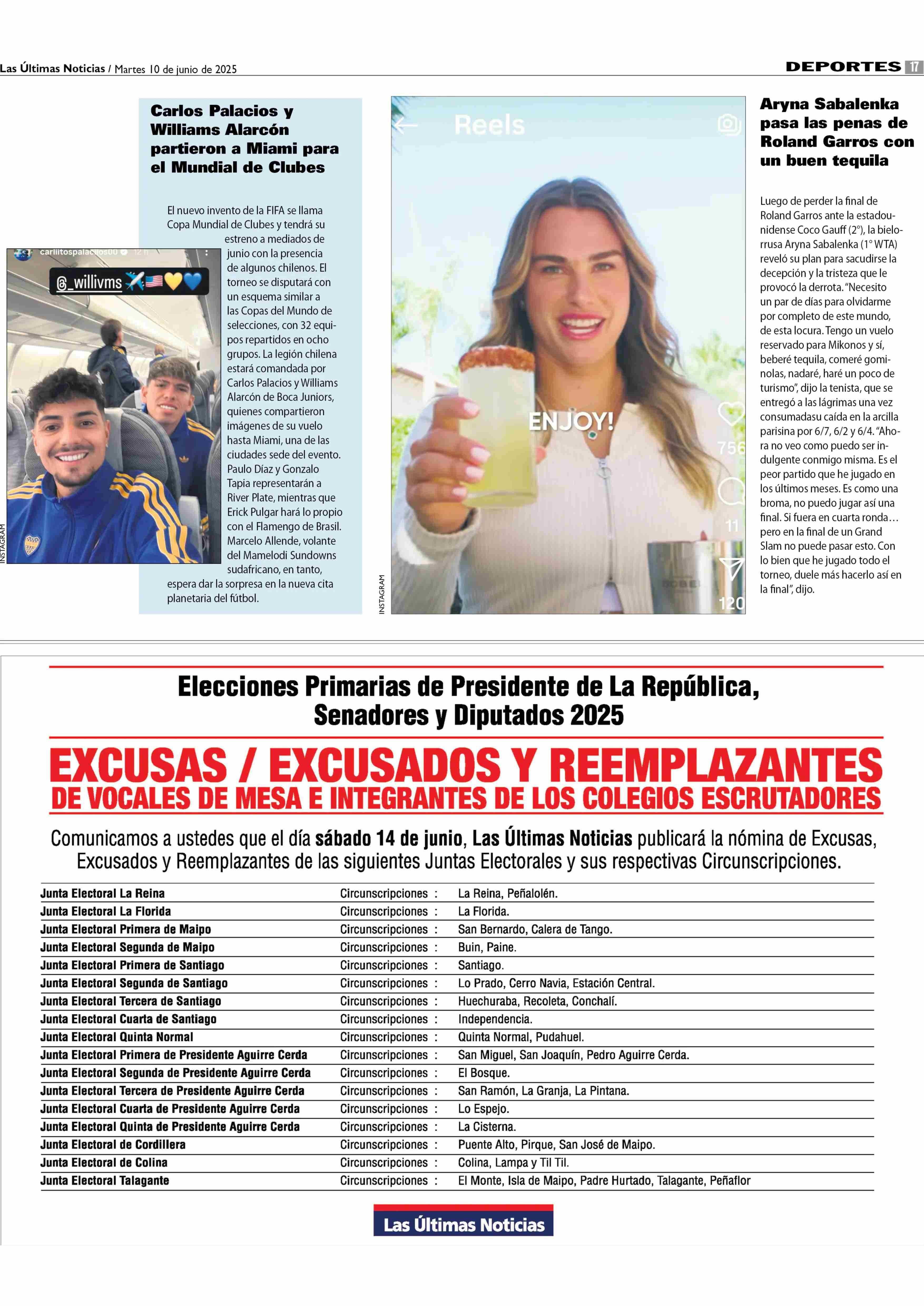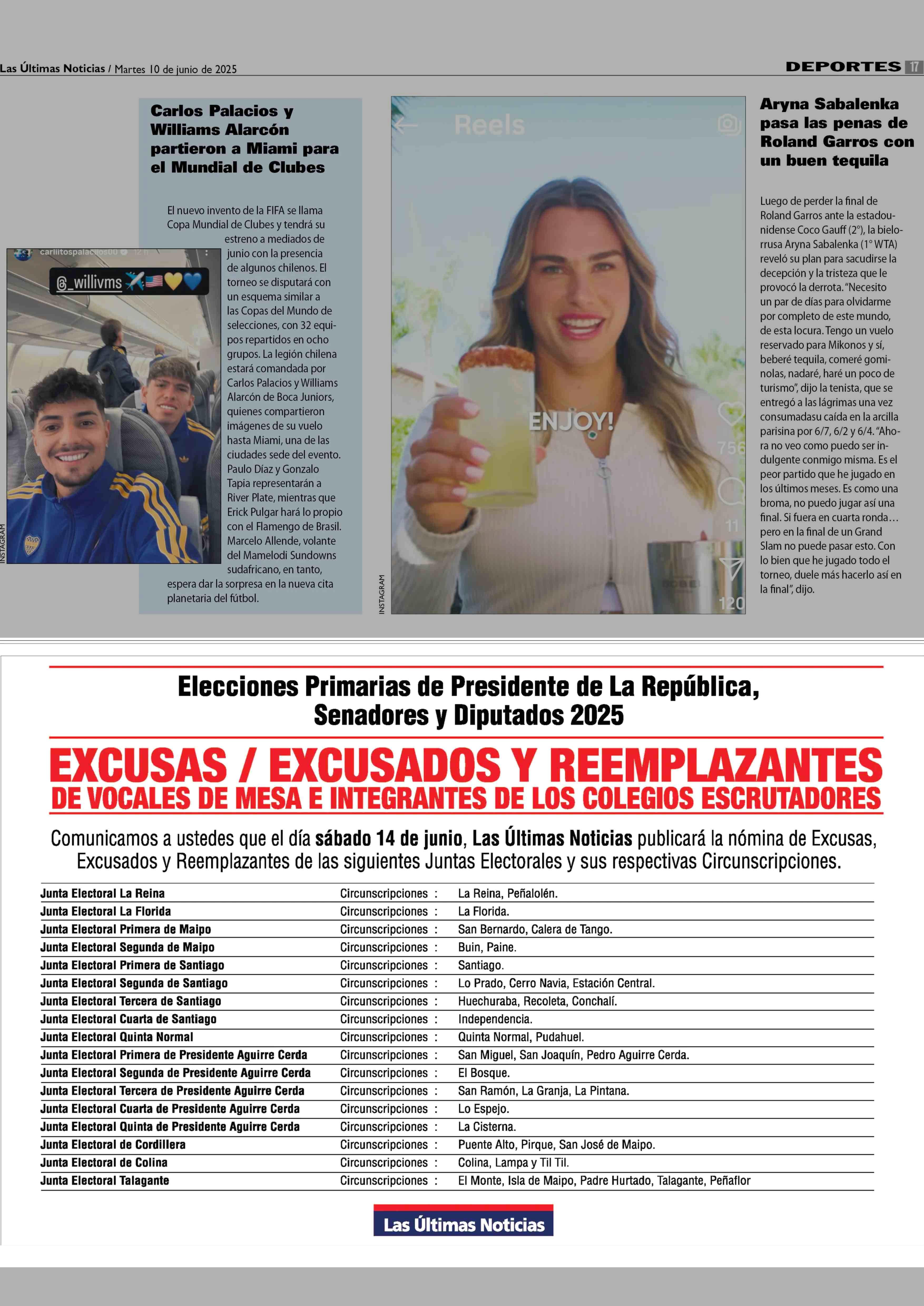 EXTRACTOS: Elecciones Primarias de Presidente de La Republica, Senadores y Diputados 2025 10-06-2025 Las Últimas Noticias |