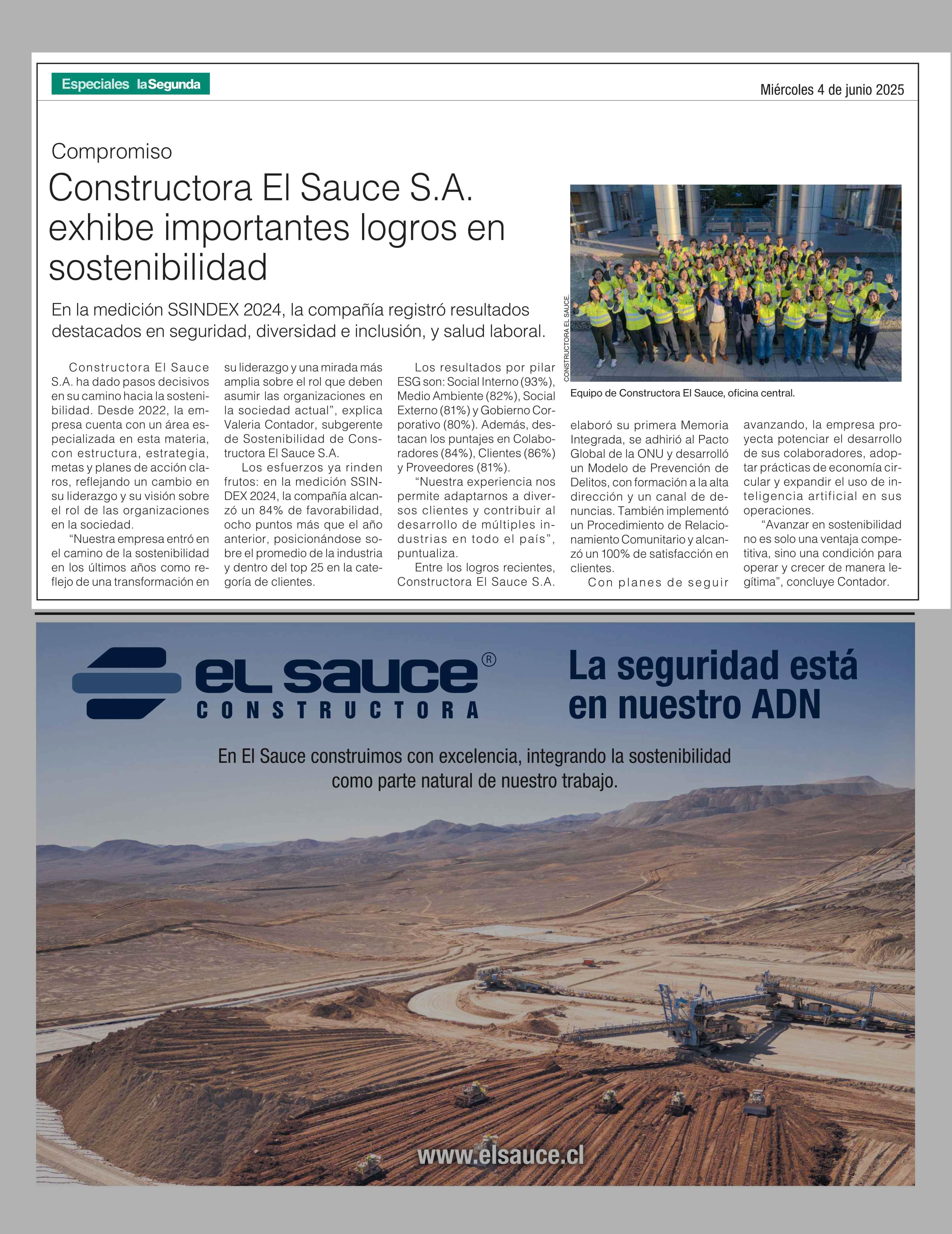 Constructora El Sauce S.A. exhibe importantes logros en sostenibilidad 04-06-2025 La Segunda |