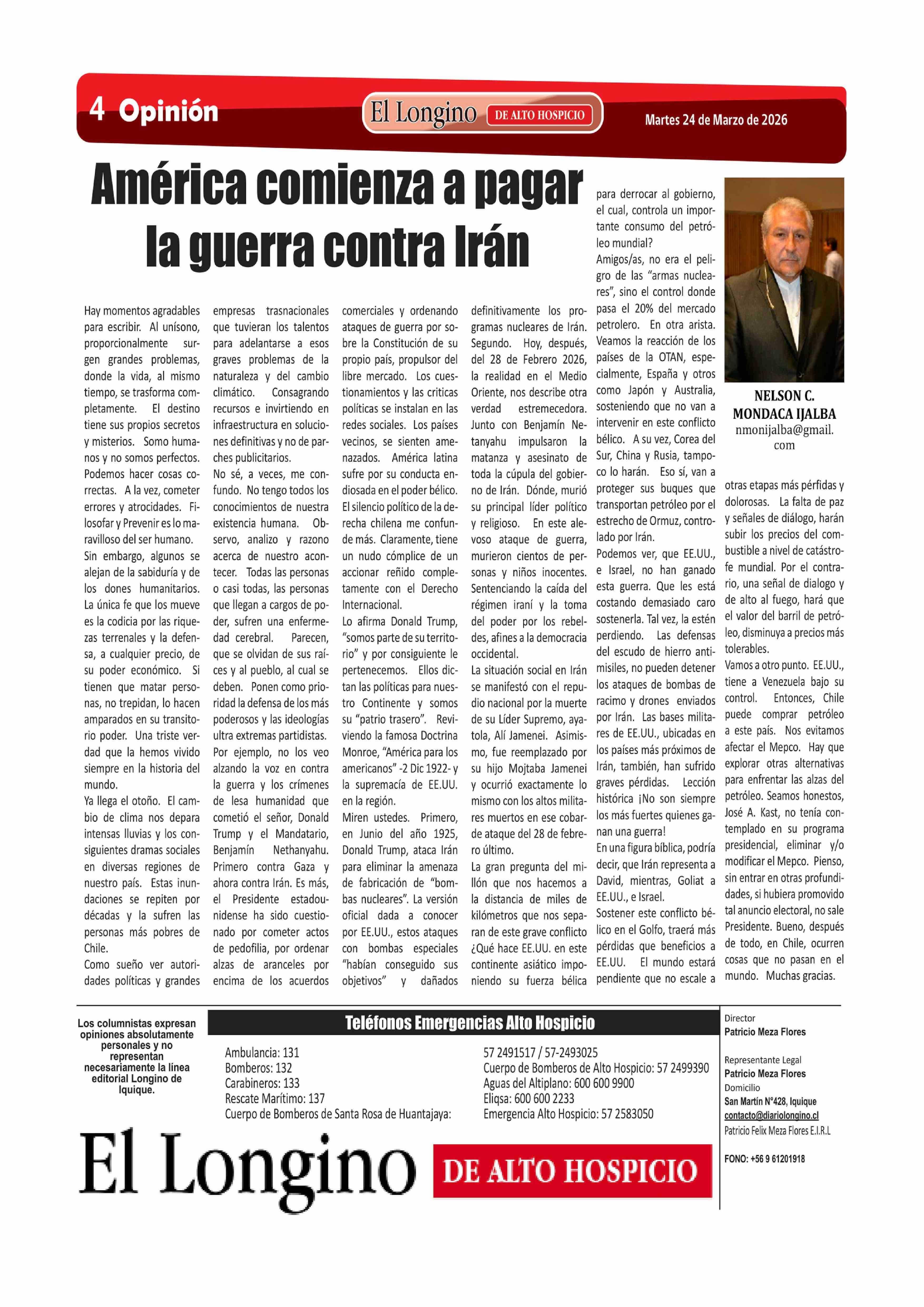 | Fecha: | 24-03-2026 | Sector: | Columnas de Opinión | Región: | Región de Tarapacá |