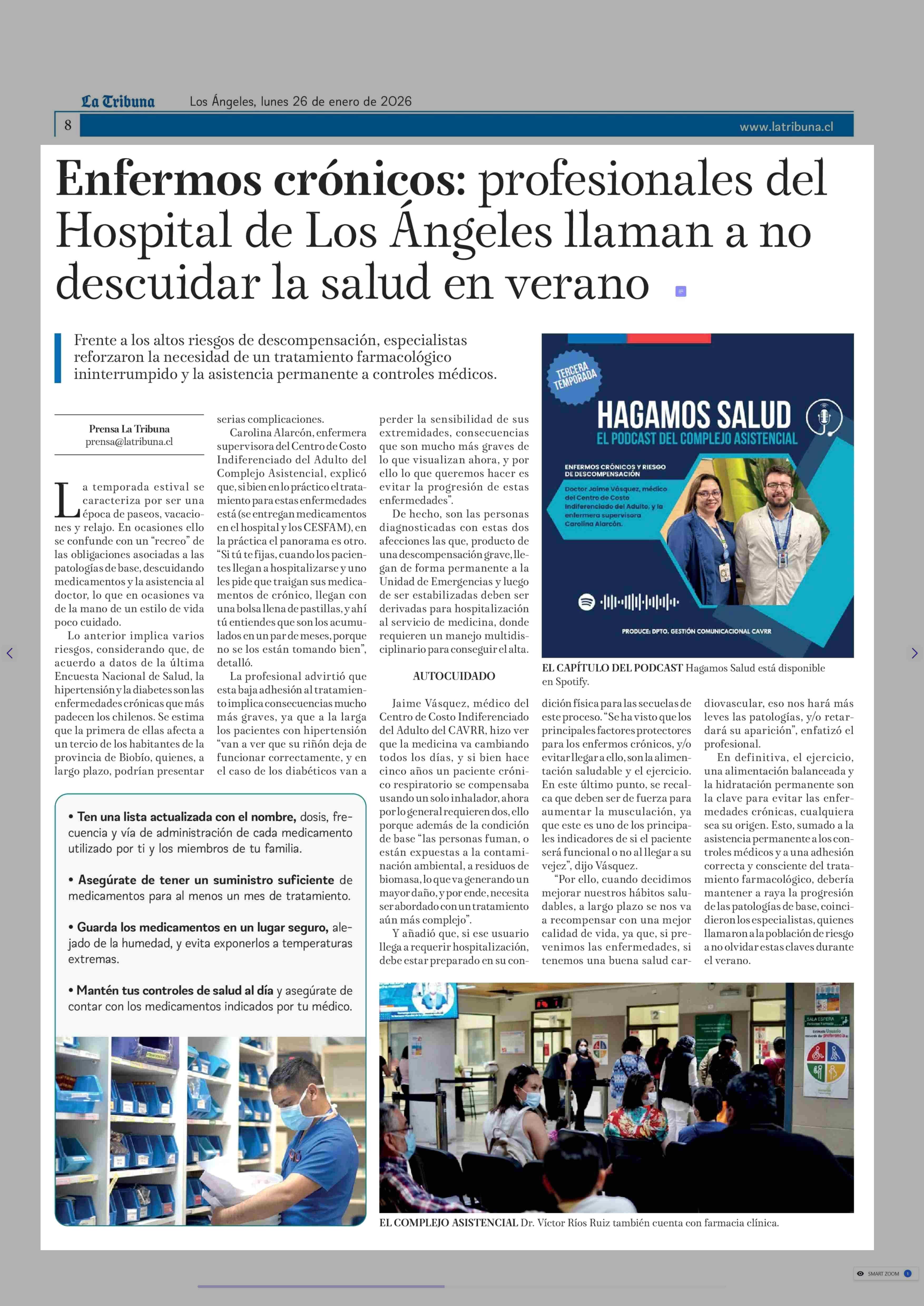 Título: Enfermos crónicos: profesionales del Hospital de Los Angeles llaman a no descuidar la salud en verano