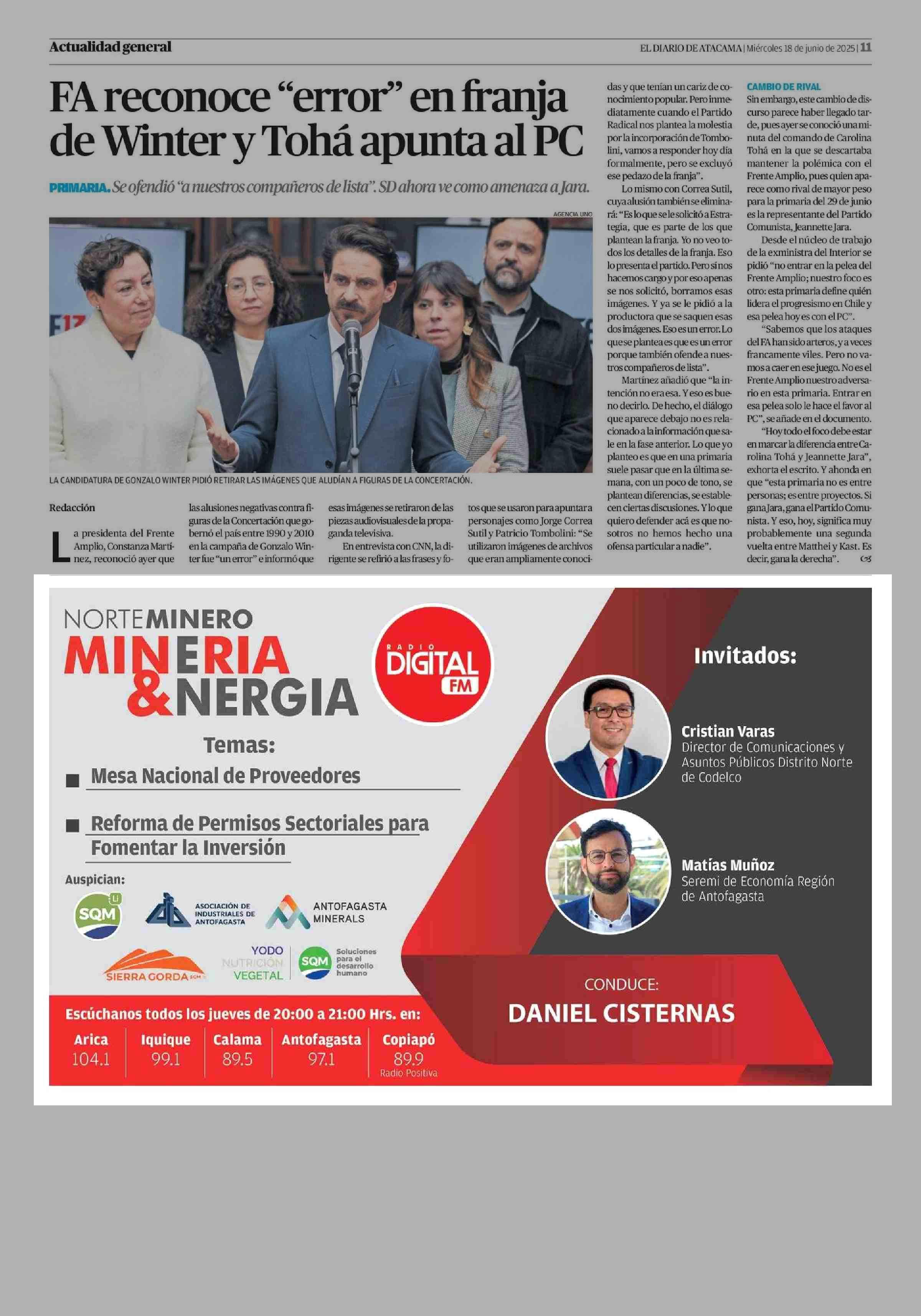 Aviso Publicitario: NORTE MINERO 18-06-2025 El Diario de Atacama |