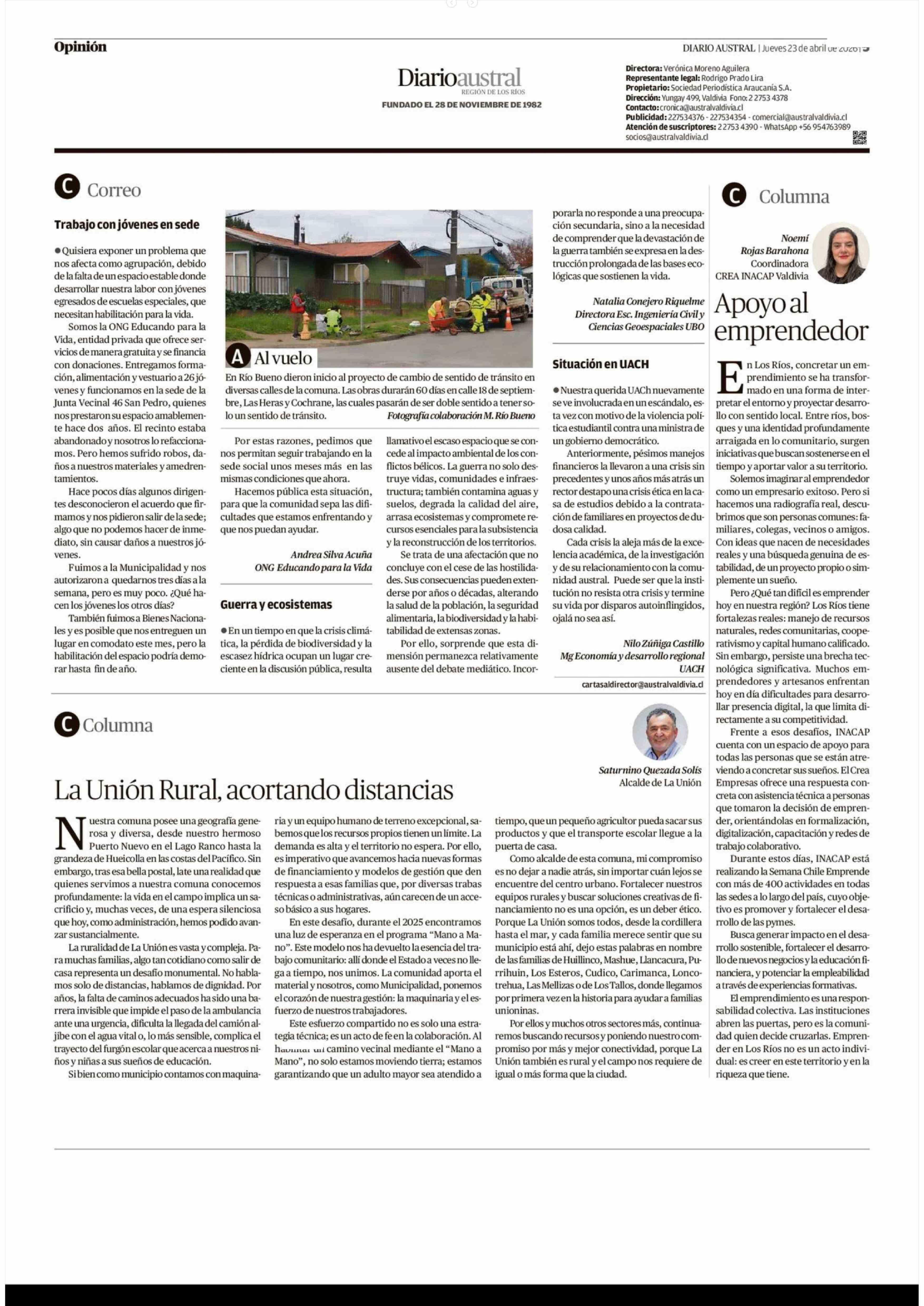 Cartas: Situación en UACH 23-04-2026 Diario Austral Región de Los Ríos |