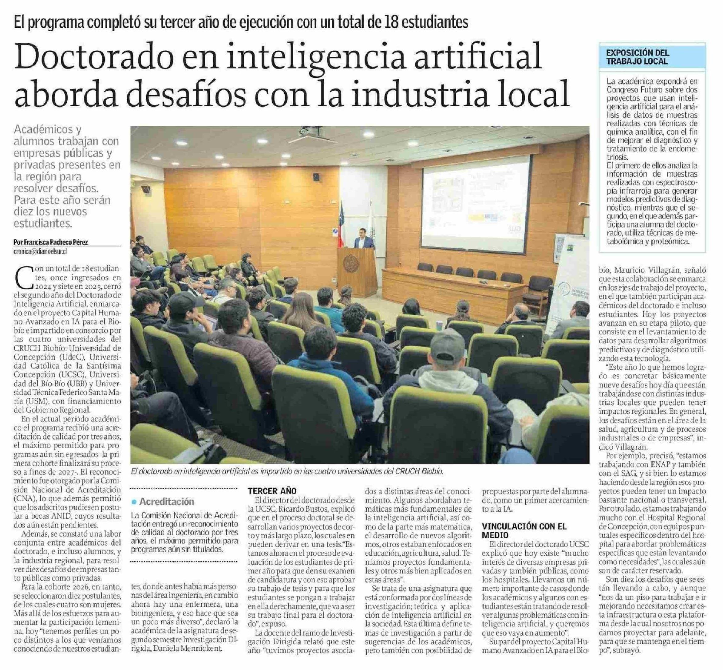 Doctorado en inteligencia artificial aborda desafíos con la industria local 14-01-2026 El Sur |