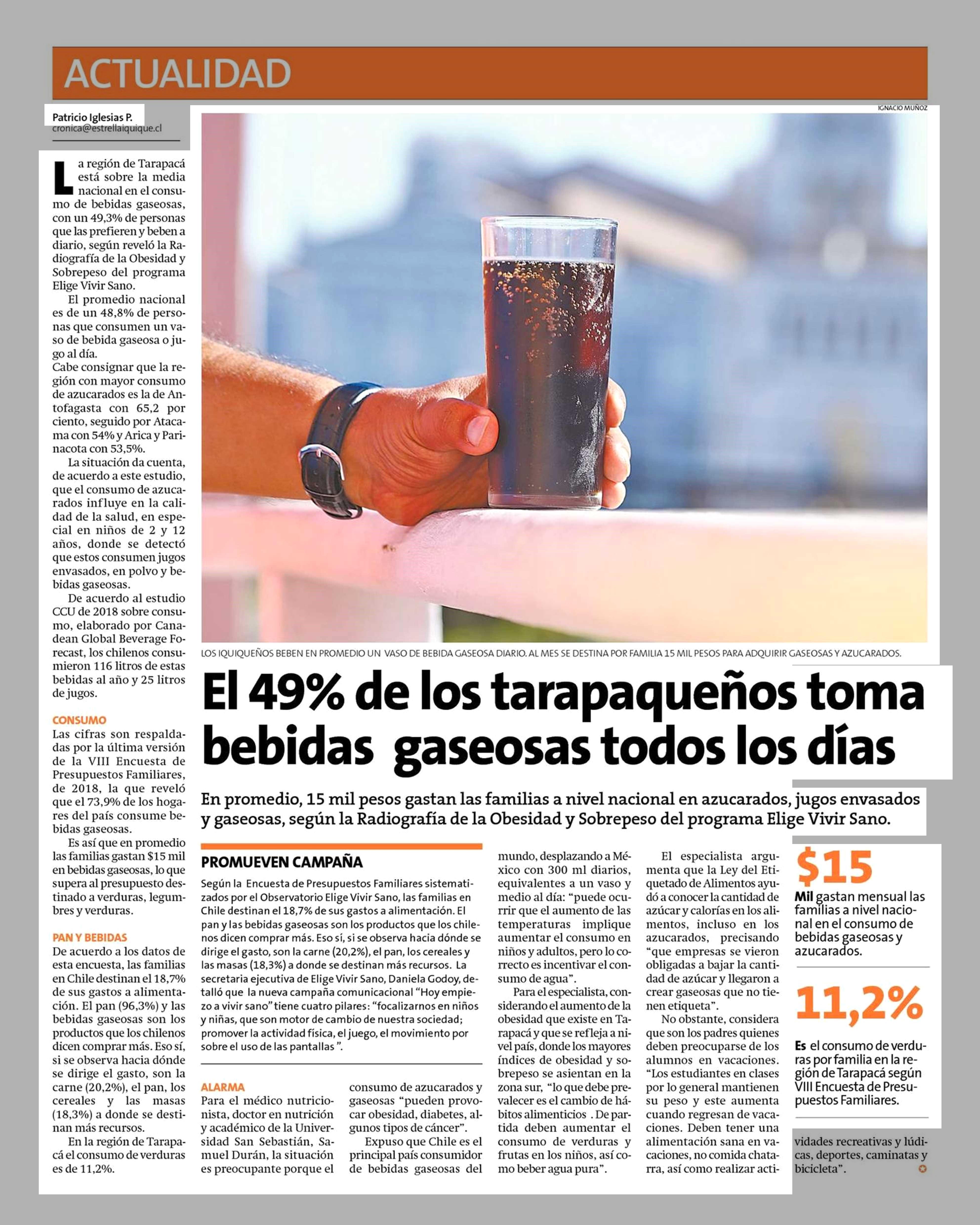 El 49% de los tarapaqueños toma bebidas gaseosas todos los días 05-02-2020 La Estrella de Iquique |