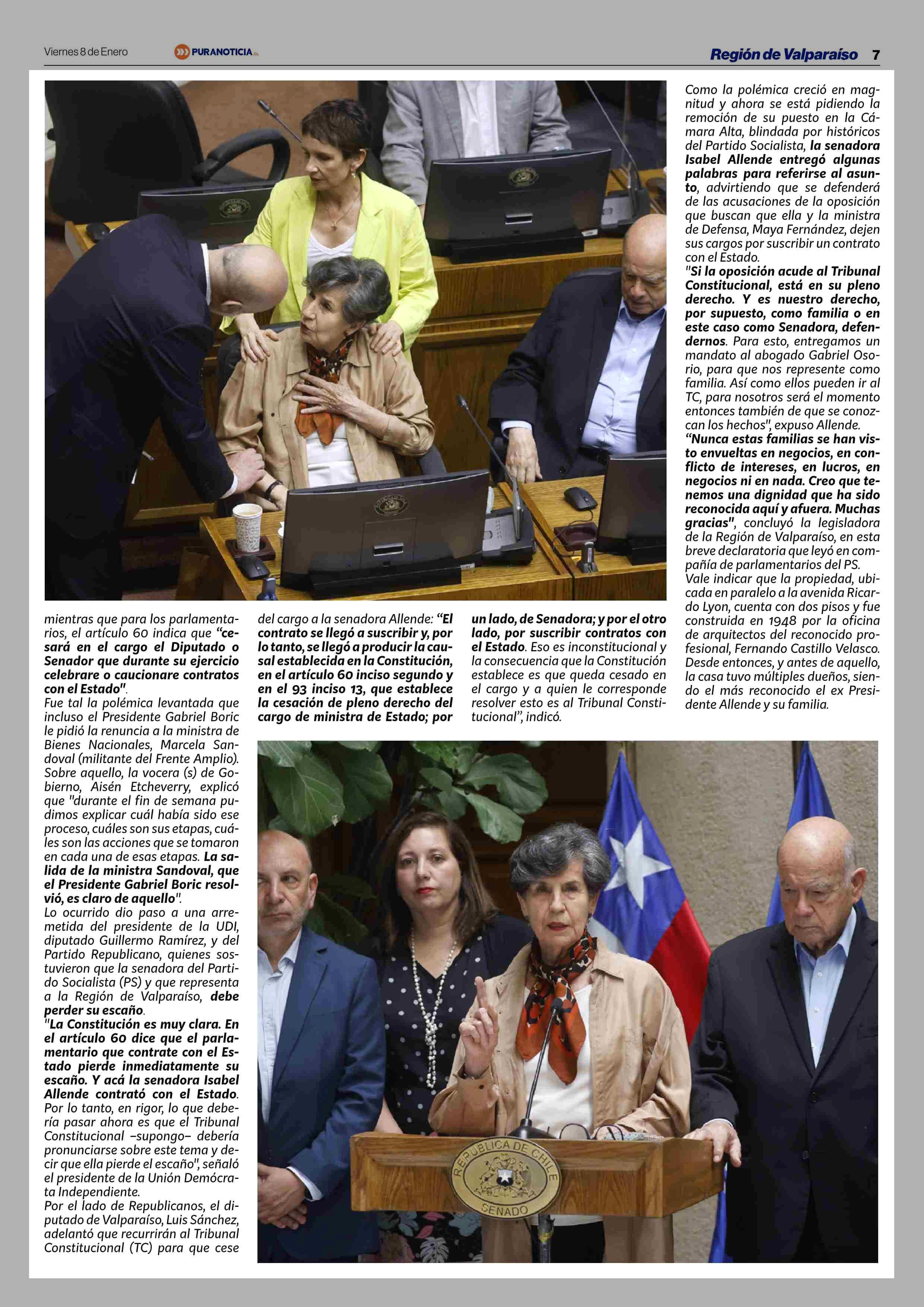 Isabel Allende tras arremetida de la oposición para que pierda escaño como Senadora de Valparaíso: "Es nuestro derecho defendernos” 08-01-2025 Puranoticia.cl |