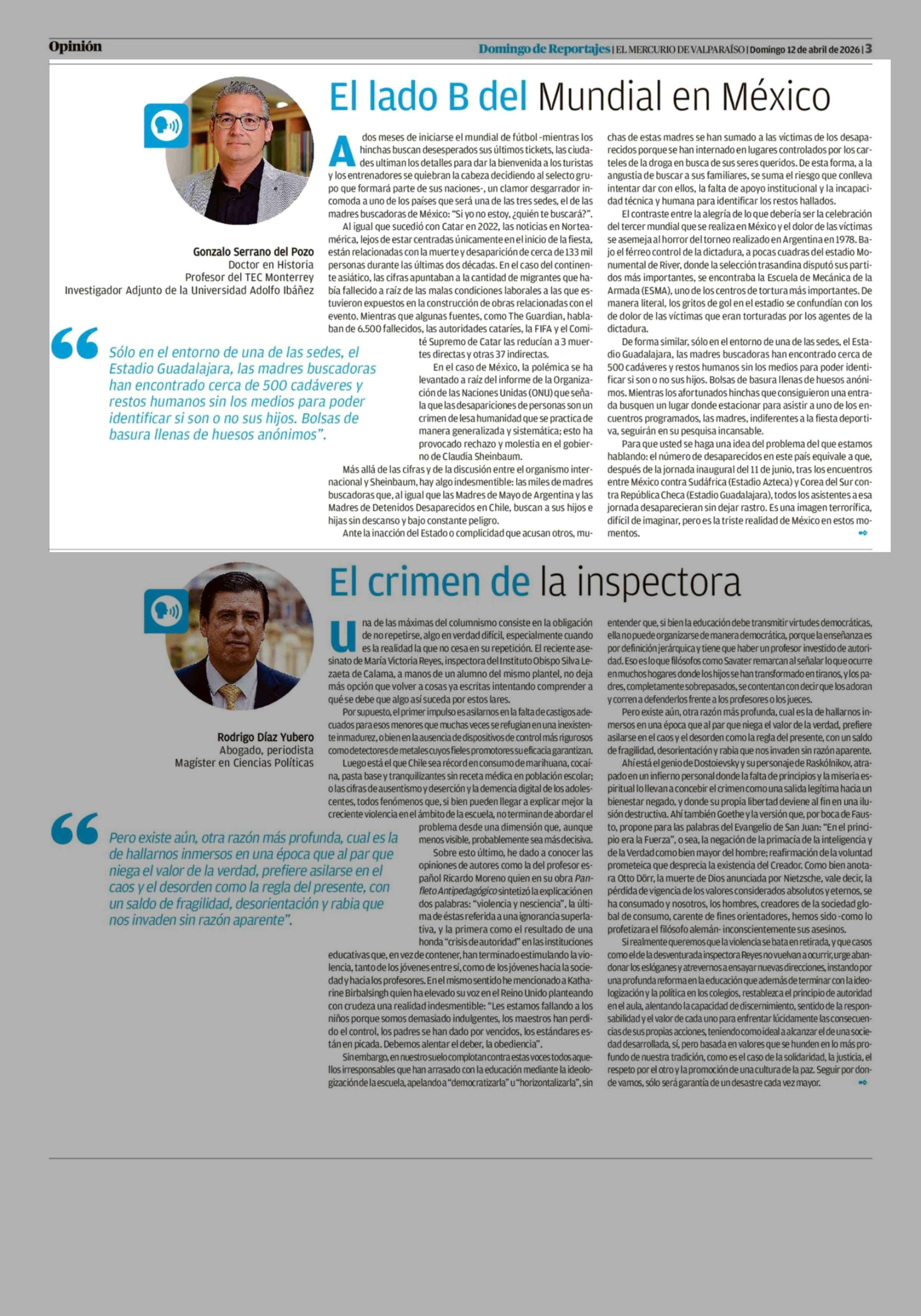 Columnas de Opinión: El lado B del Mundial en México 12-04-2026 El Mercurio de Valparaíso |