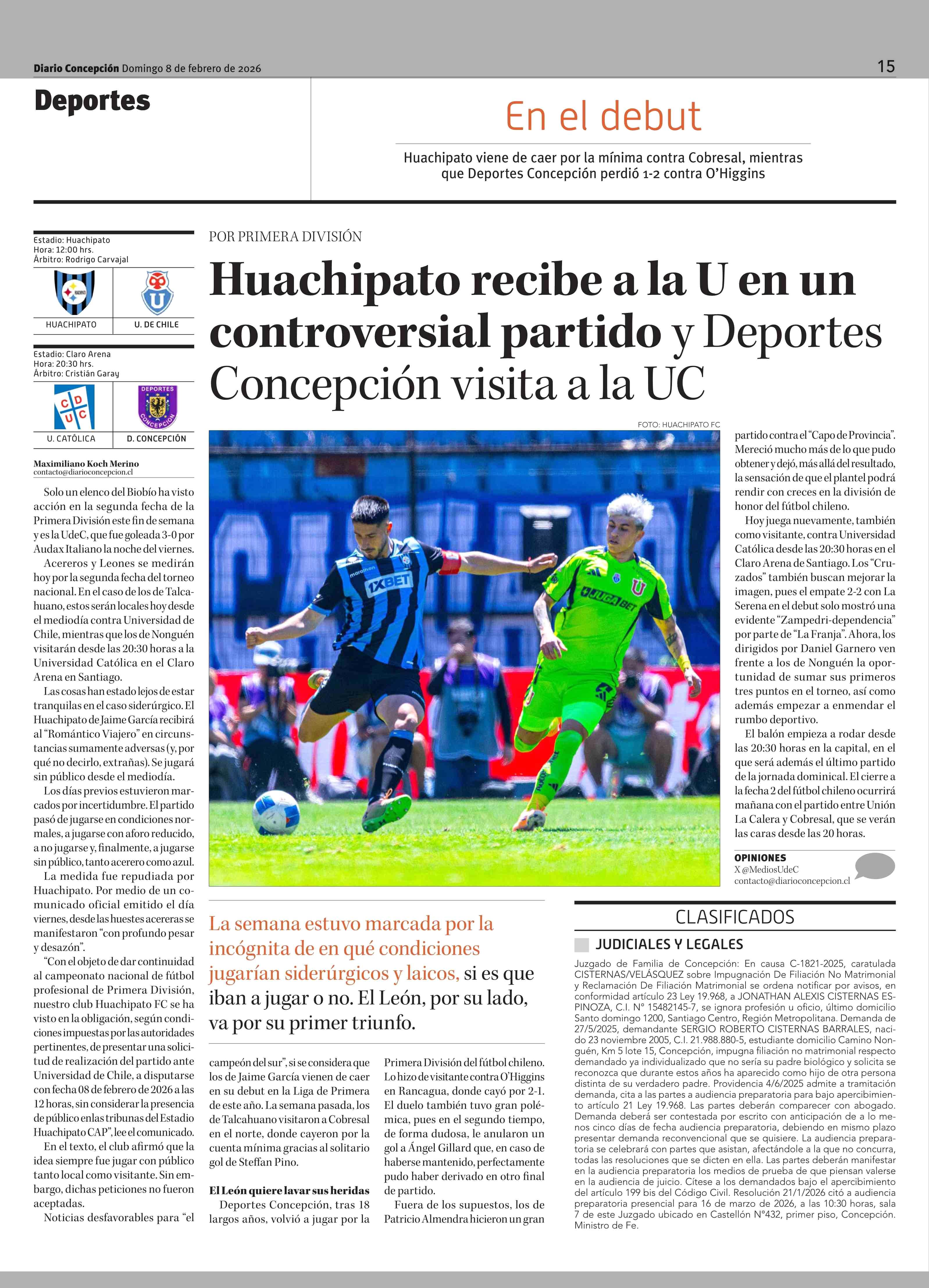 Huachipato recibe a la U en un controversial partido y Deportes Concepción visita a la UC 08-02-2026 Diario Concepción |