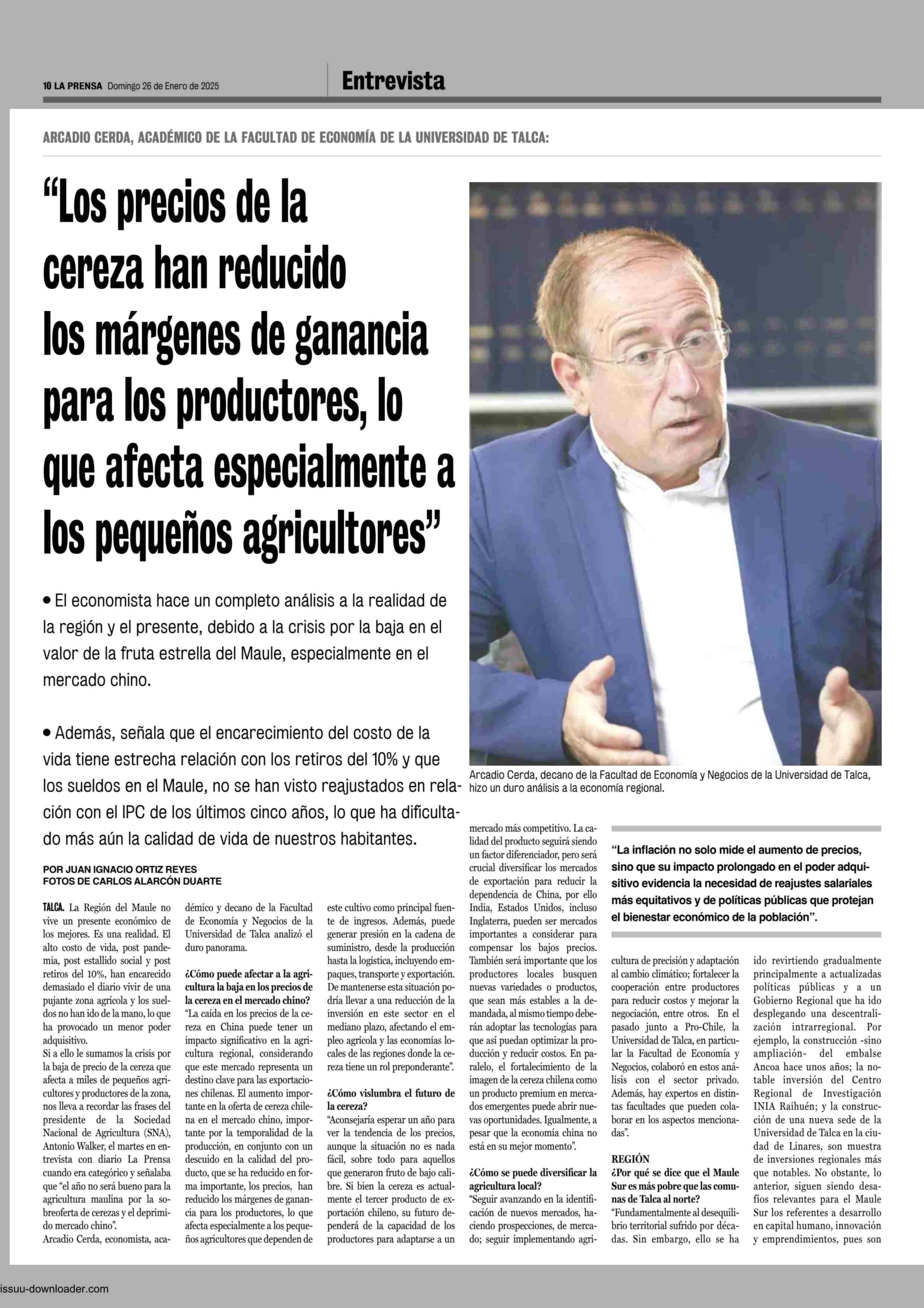 “Los precios de la cereza han reducido los márgenes de ganancia para los productores, lo que afecta especialmente a los pequeños agricultores” 26-01-2025 La Prensa de Curicó |