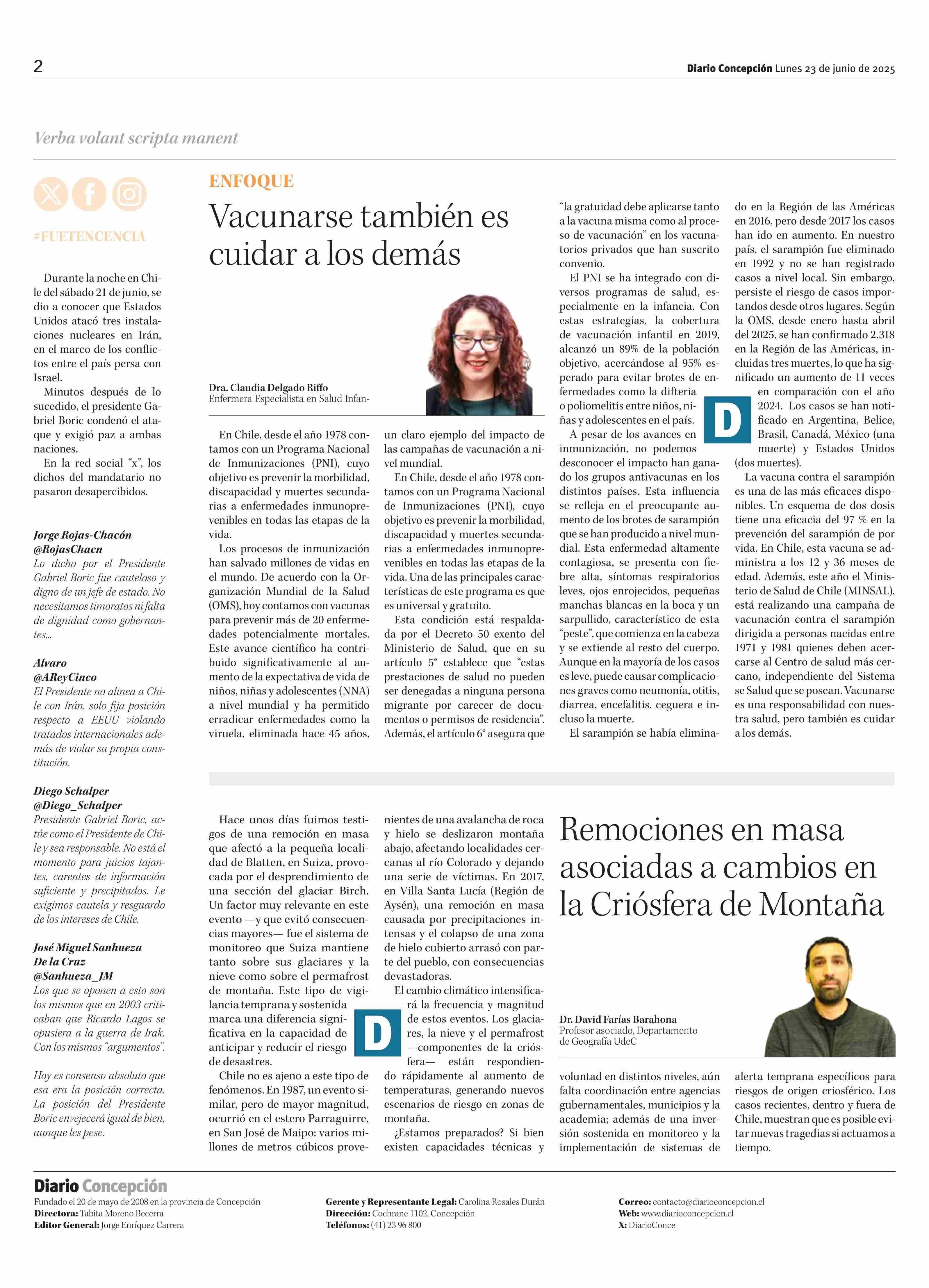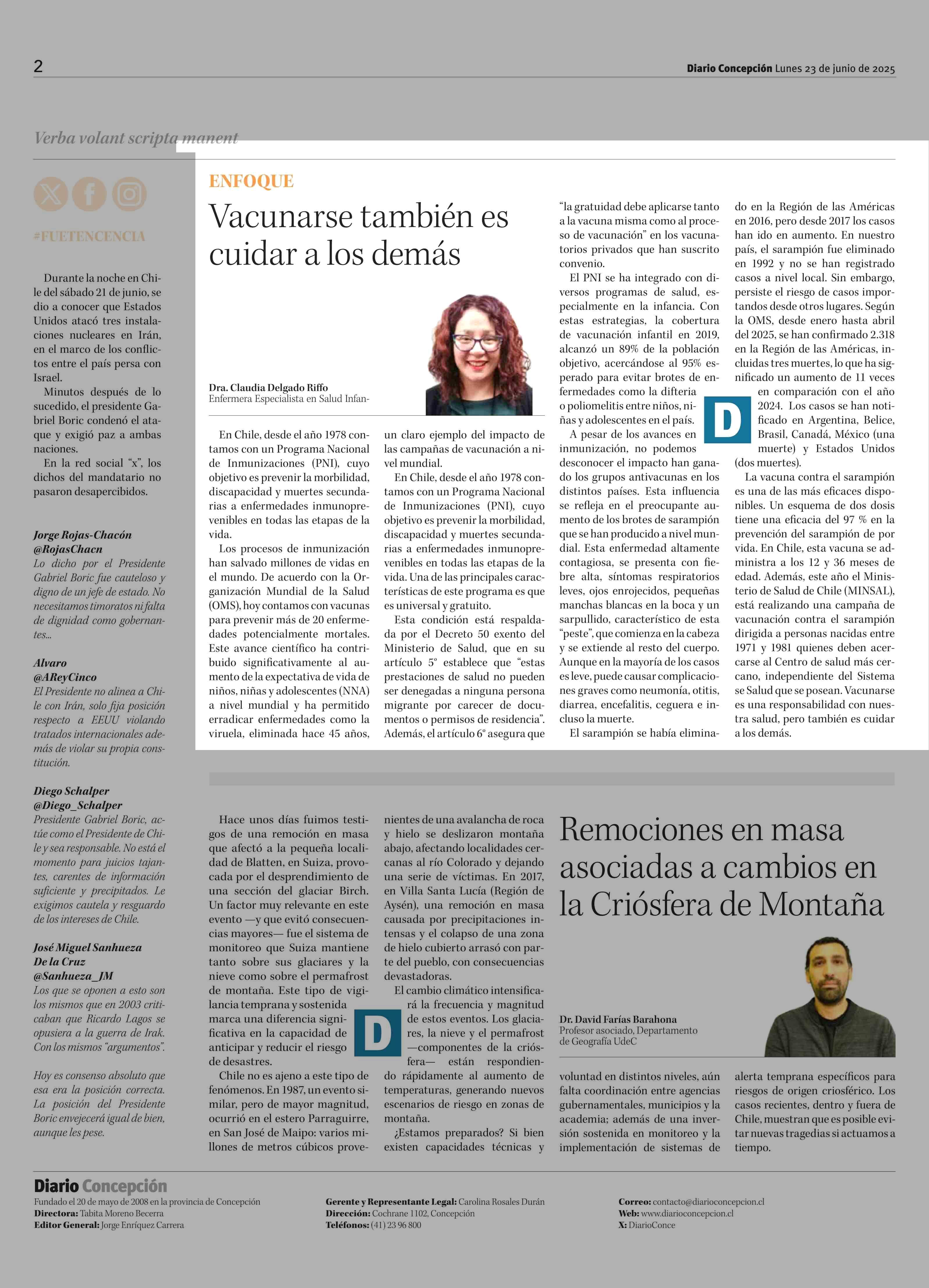 COLUMNAS DE OPINIÓN: Vacunarse también es cuidar a los demás 23-06-2025 Diario Concepción |