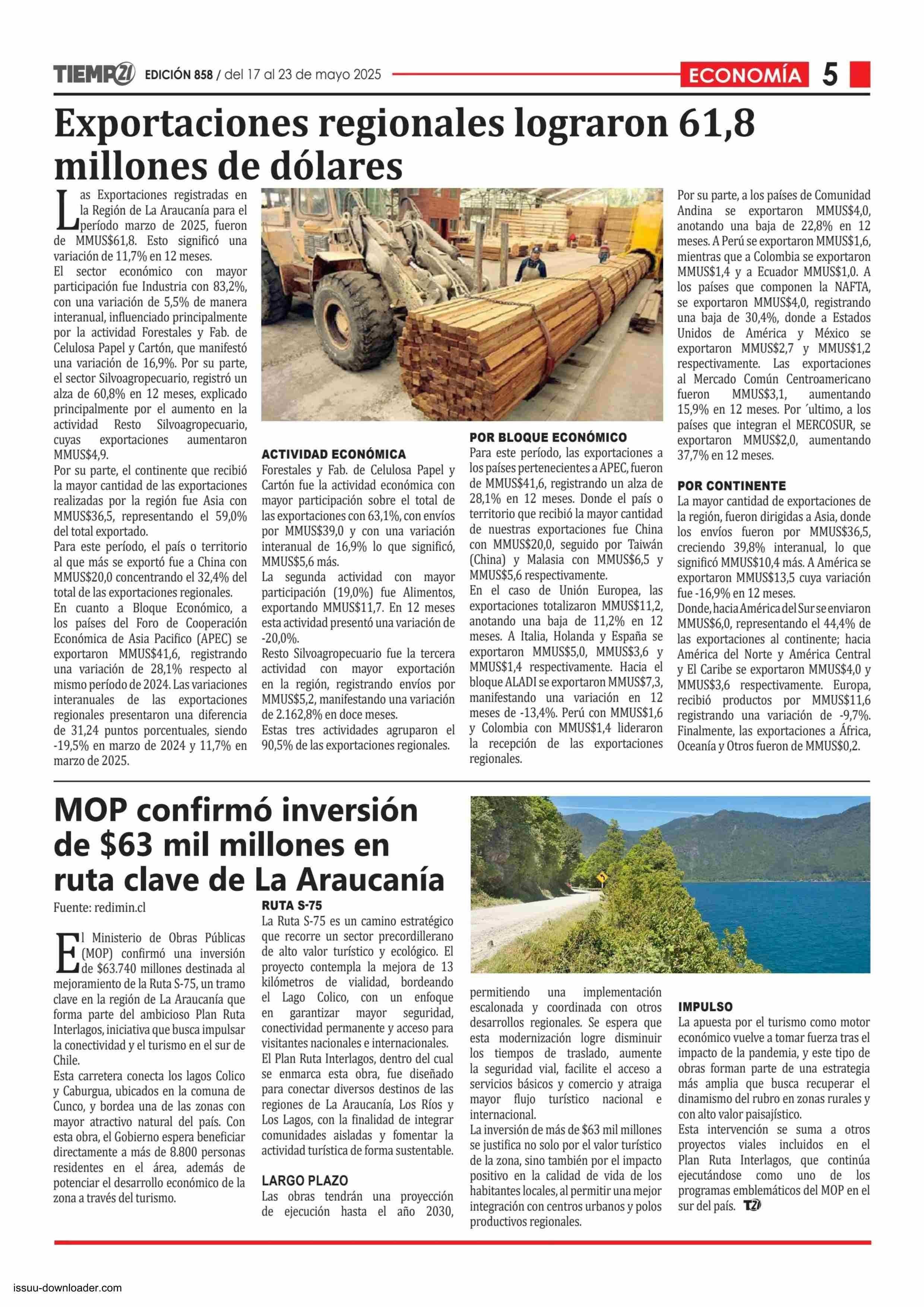 Exportaciones regionales lograron 61,8 millones de dólares 17-05-2025 Tiempo 21 |