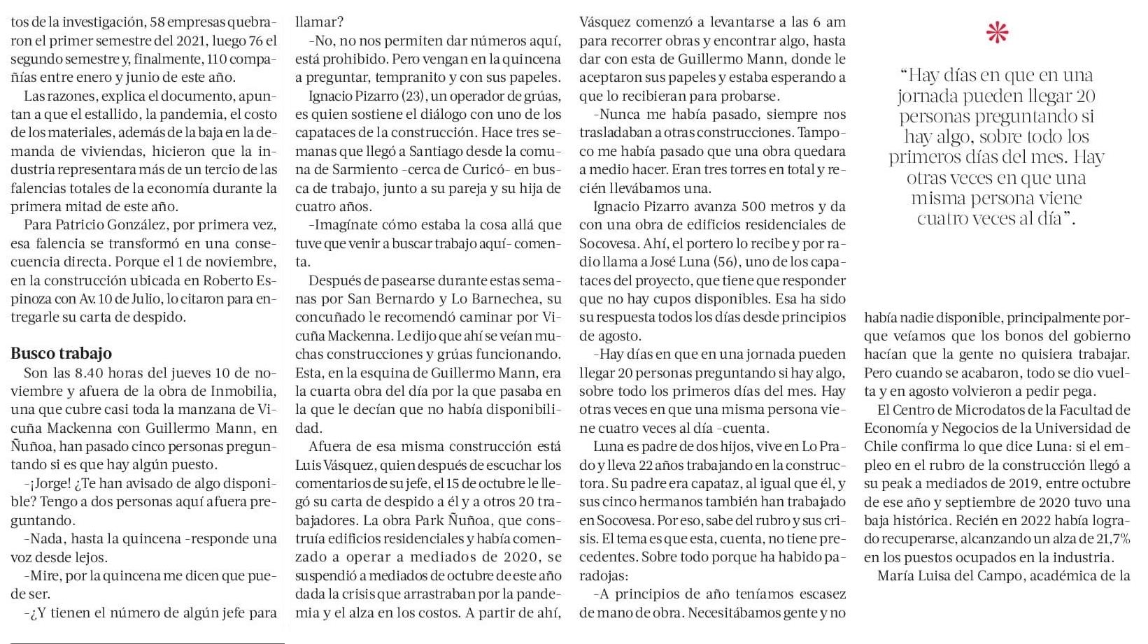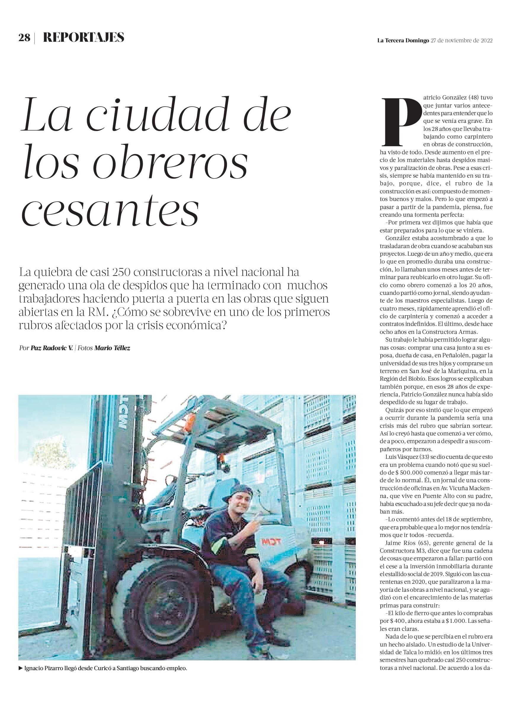 La ciudad de los obreros cesantes 27-11-2022 La Tercera |