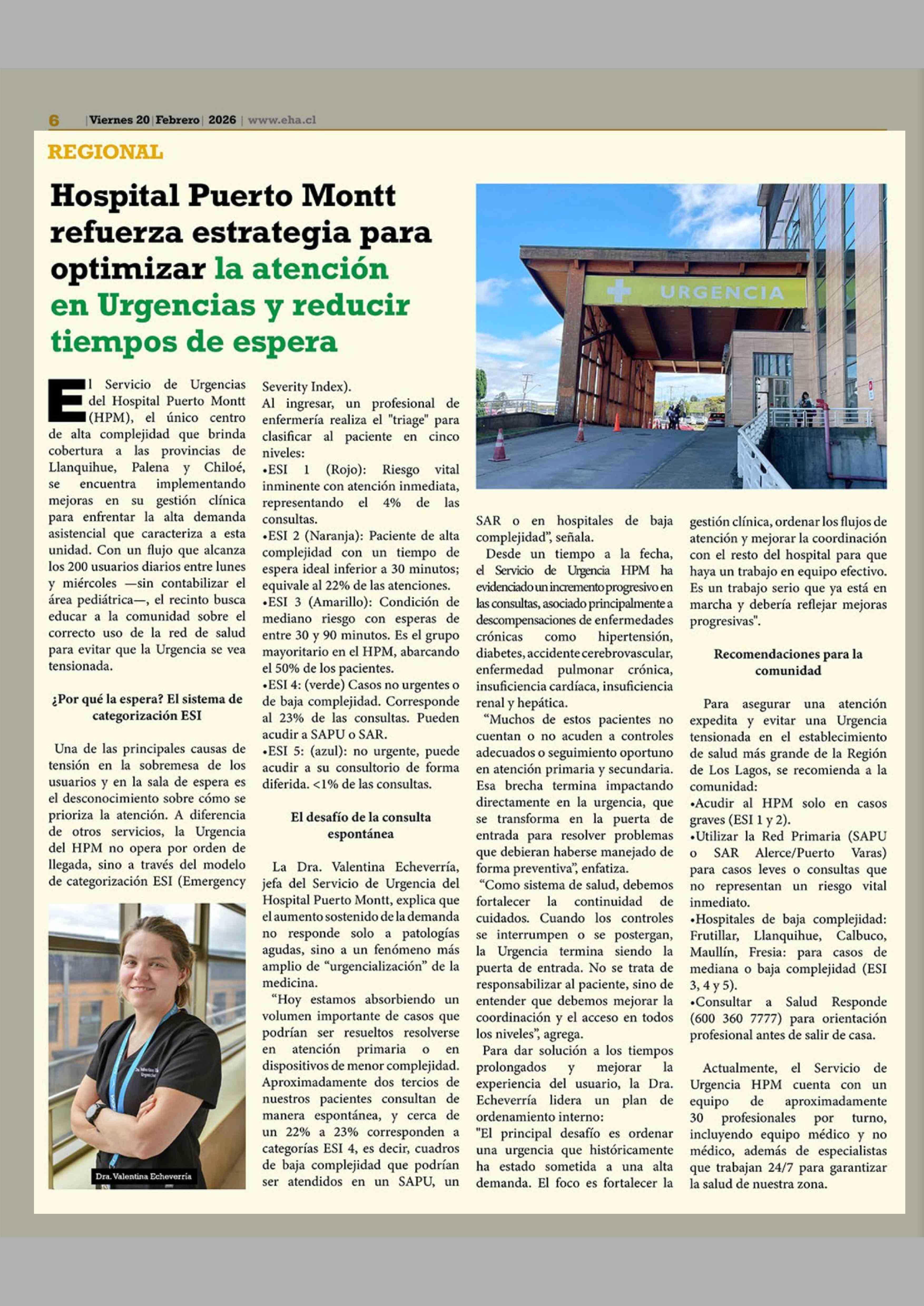Hospital Puerto Montt refuerza estrategia para optimizar la atención en Urgencias y reducir tiempos de espera 20-02-2026 El Heraldo Austral |
