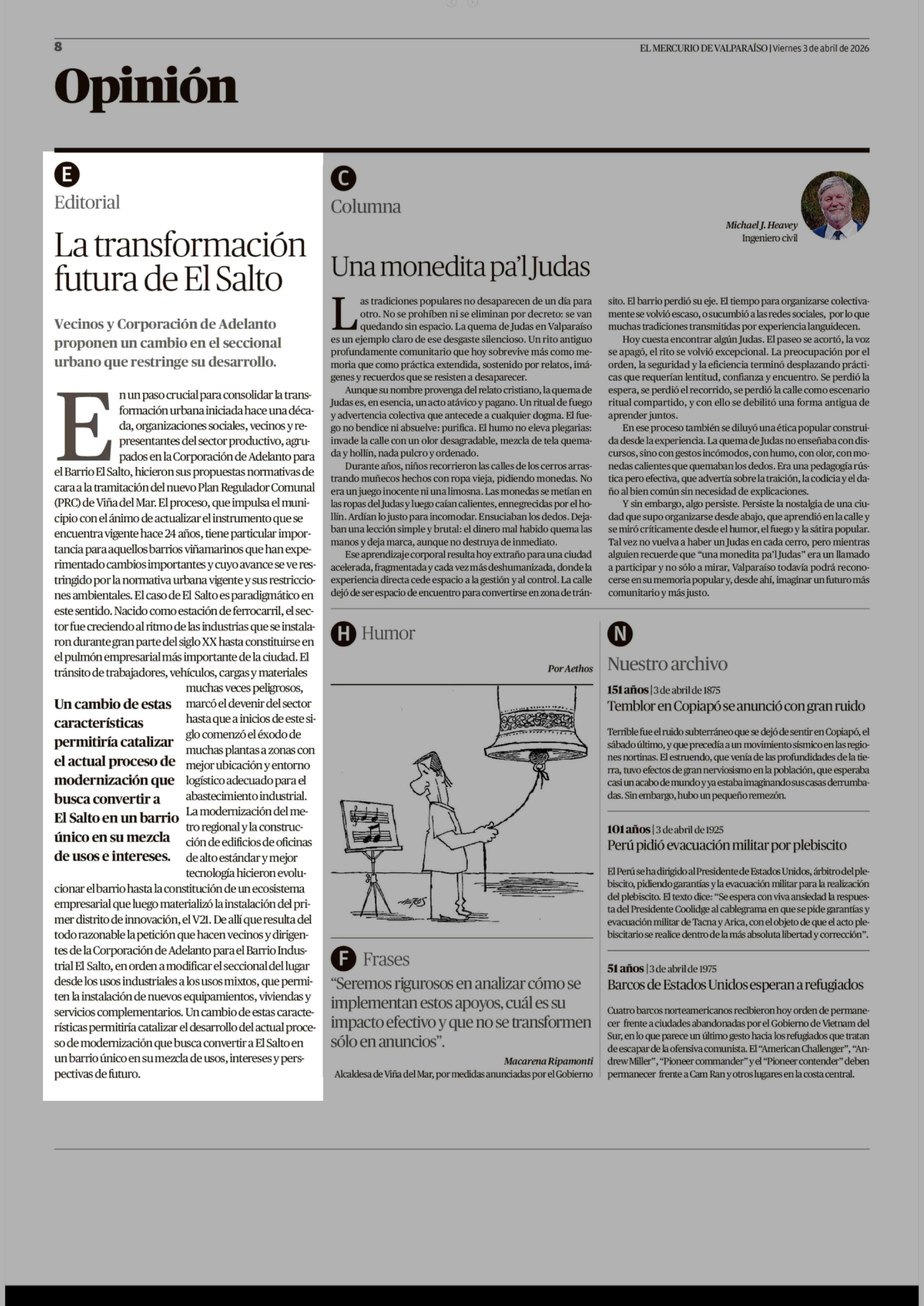 Editorial: La transformación futura de El Salto 03-04-2026 El Mercurio de Valparaíso |