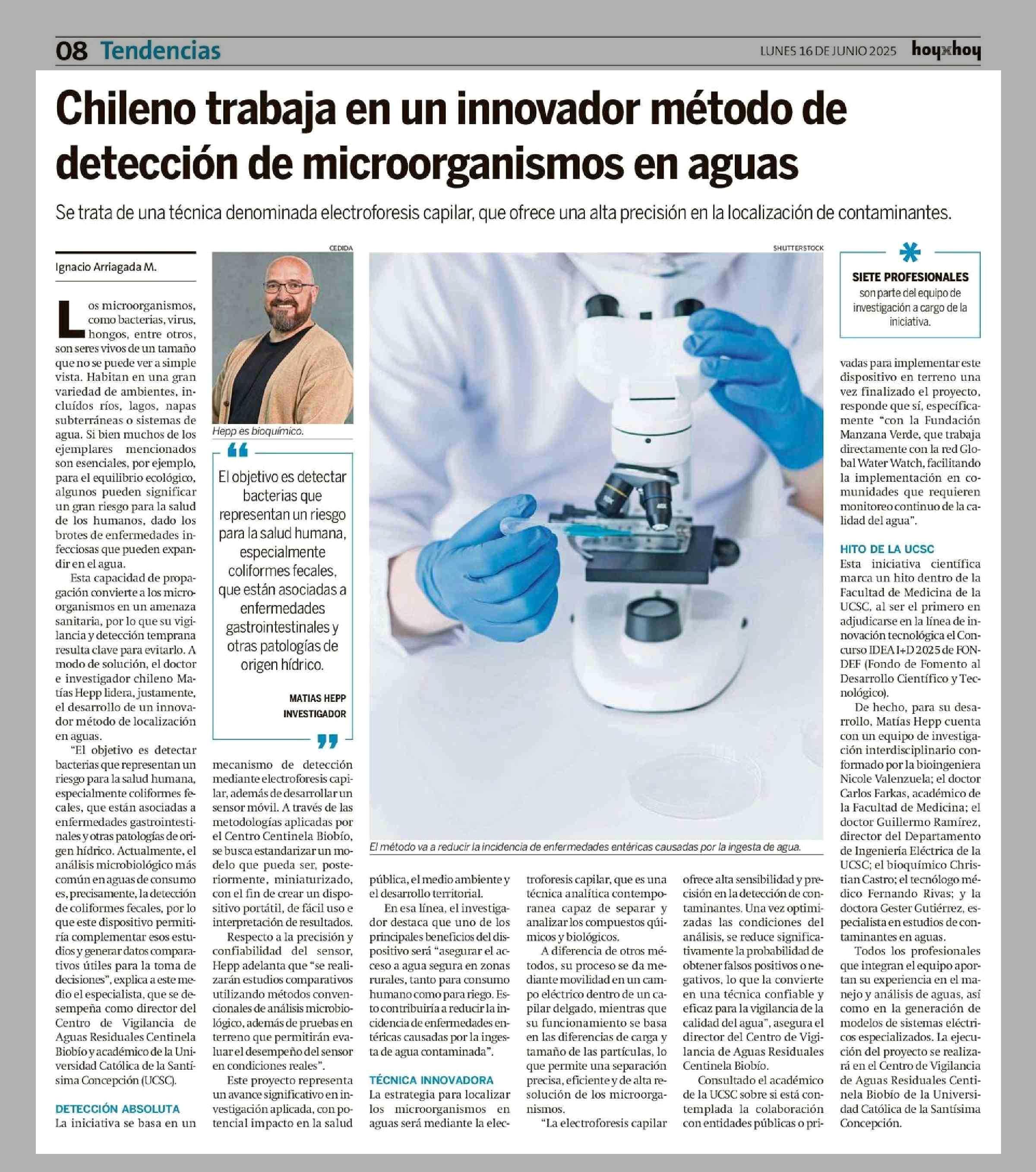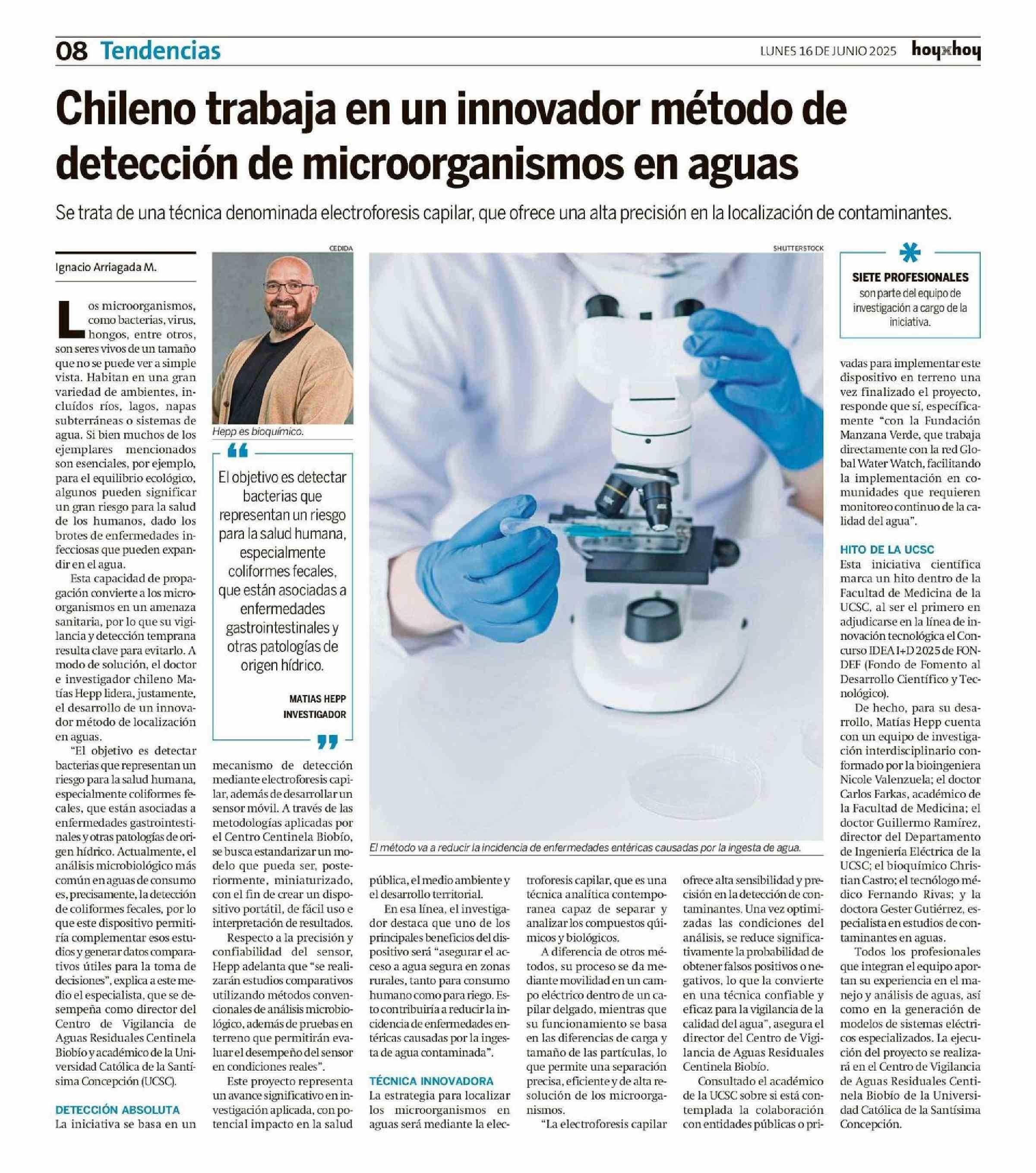 Chileno trabaja en un innovador método de detección de microorganismos en aguas 16-06-2025 Hoy x Hoy Antofagasta |