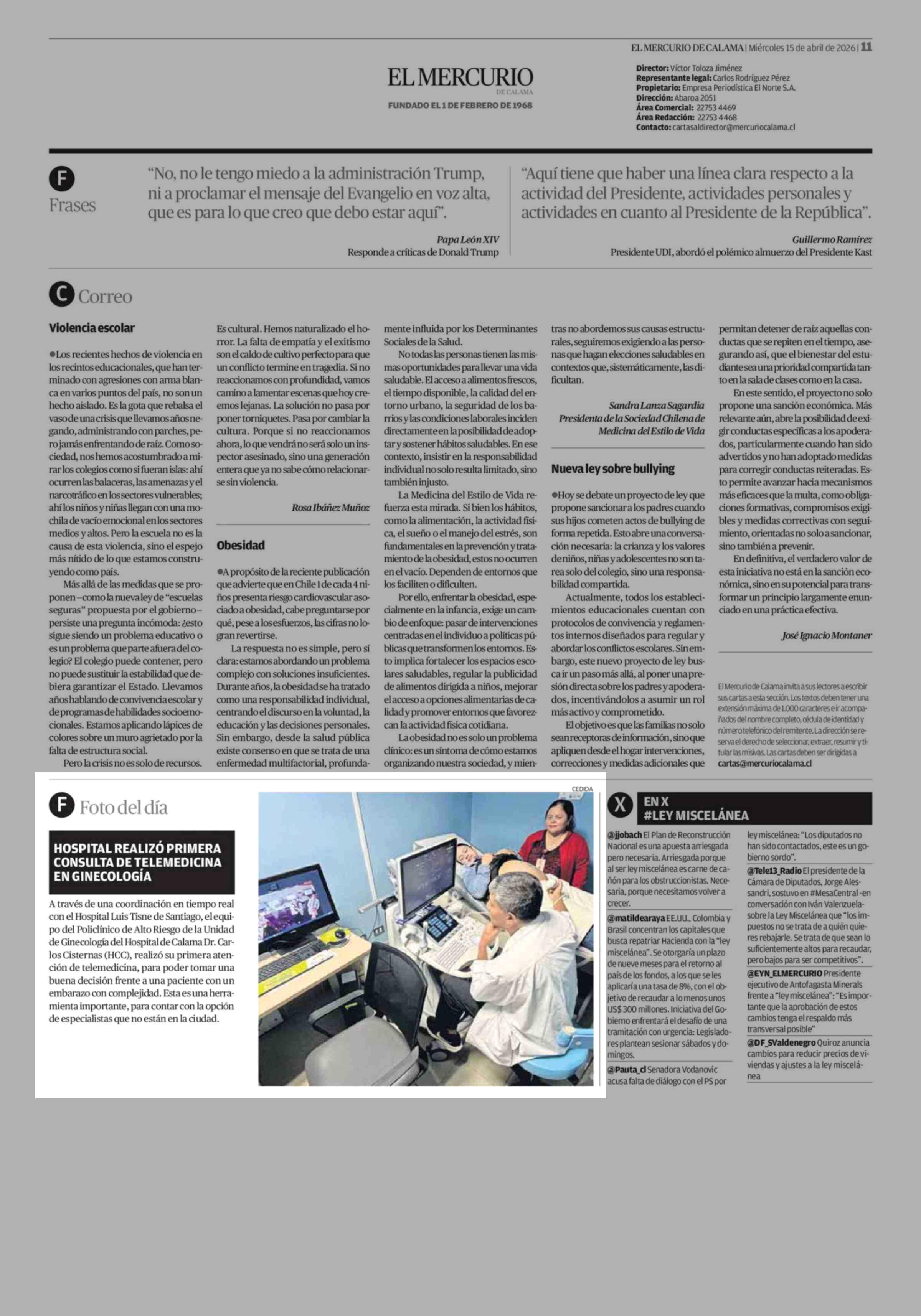 Foto del día 15-04-2026 El Mercurio de Calama |