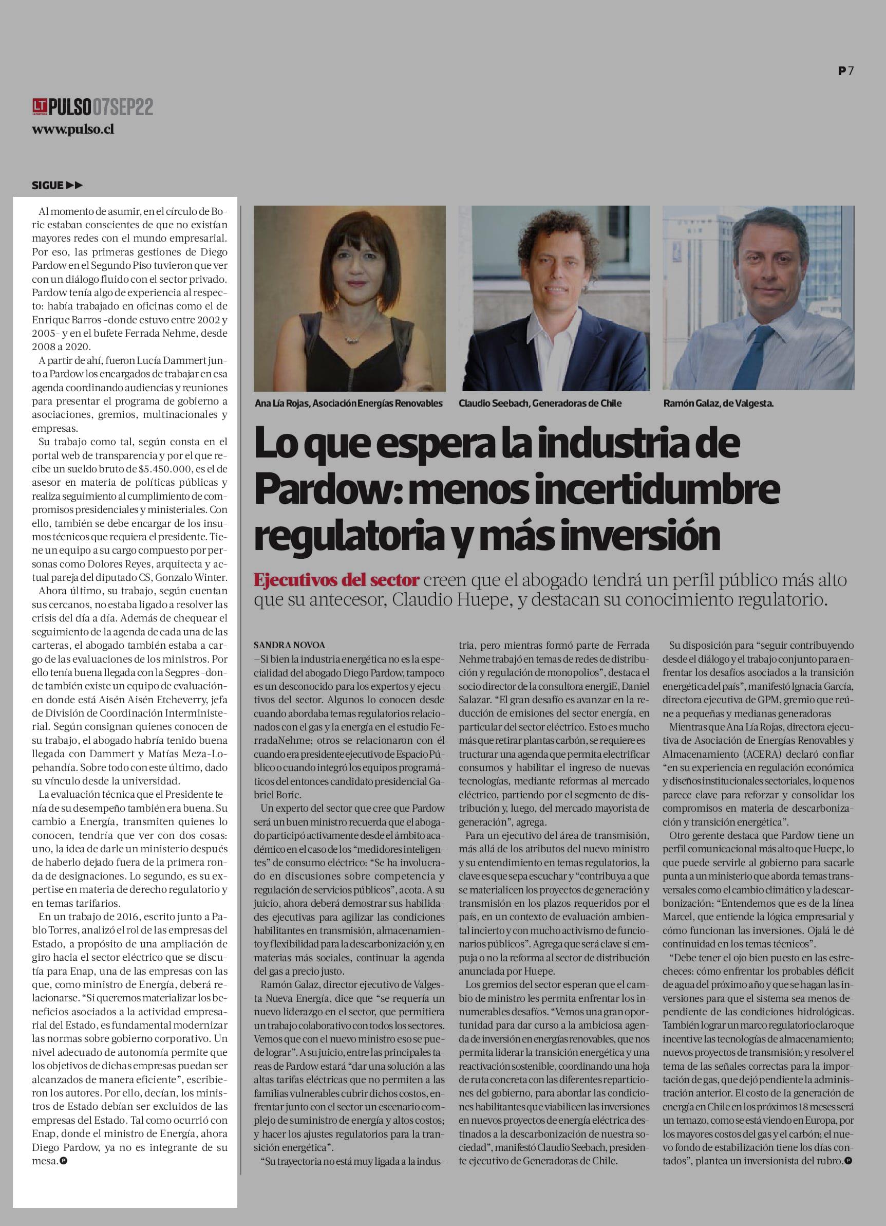 Diego Pardow, del segundo Piso al Ministerio de Energía 07-09-2022 La Tercera |