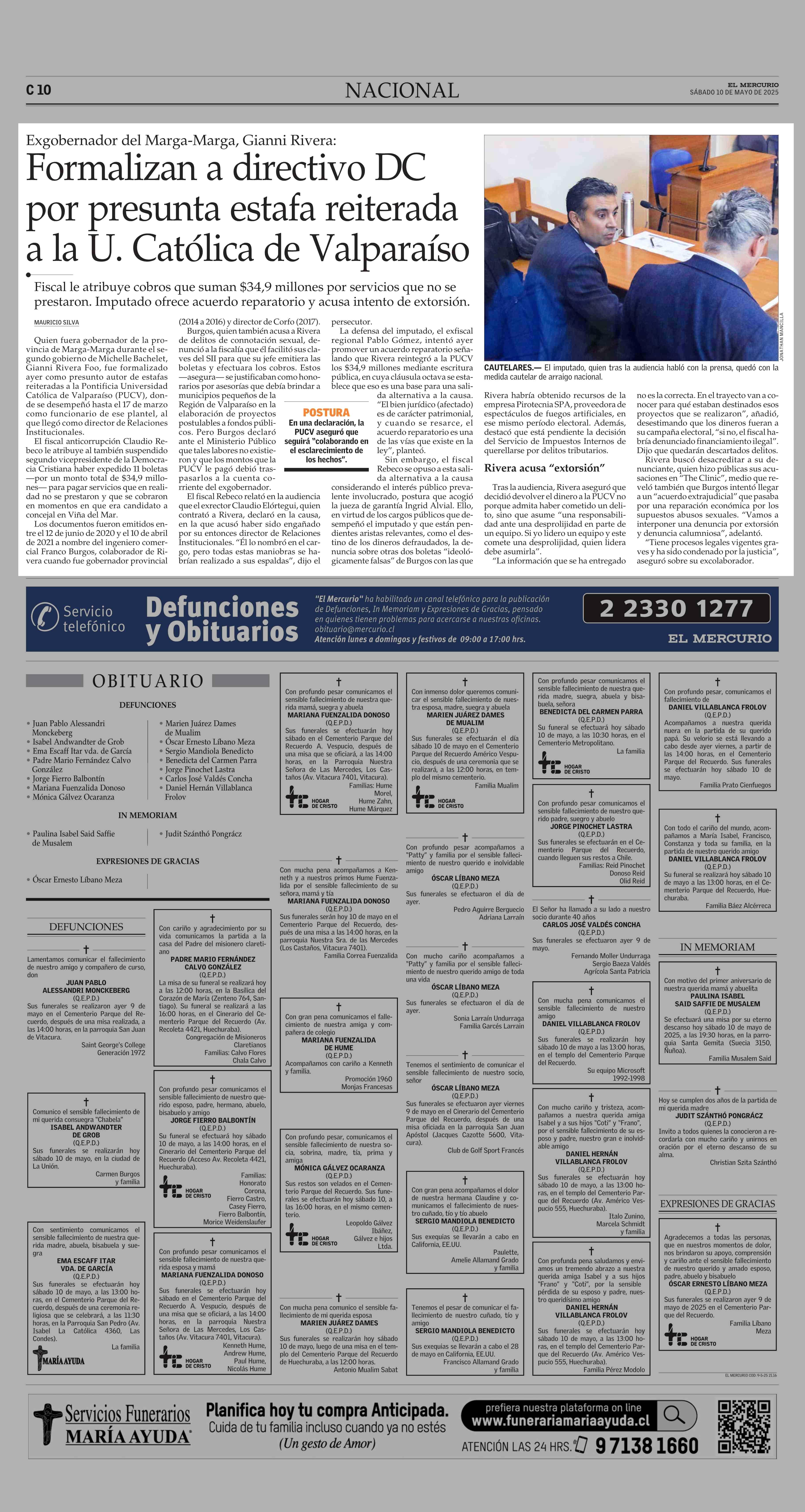 Formalizan a directivo DC por presunta estafa reiterada a la U. Católica de Valparaíso 10-05-2025 El Mercurio |
