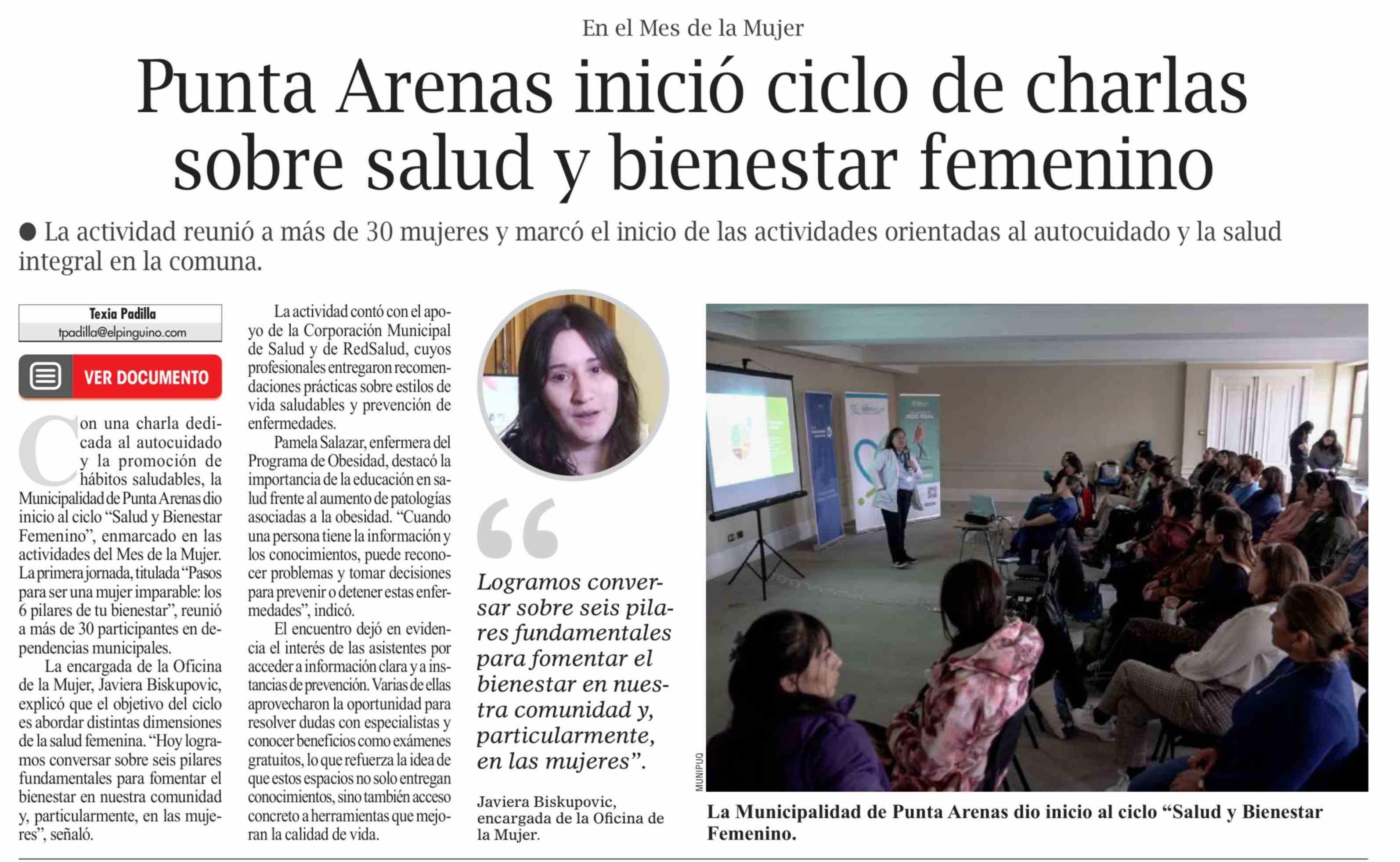 Título: Punta Arenas inició ciclo de charlas sobre salud y bienestar femenino